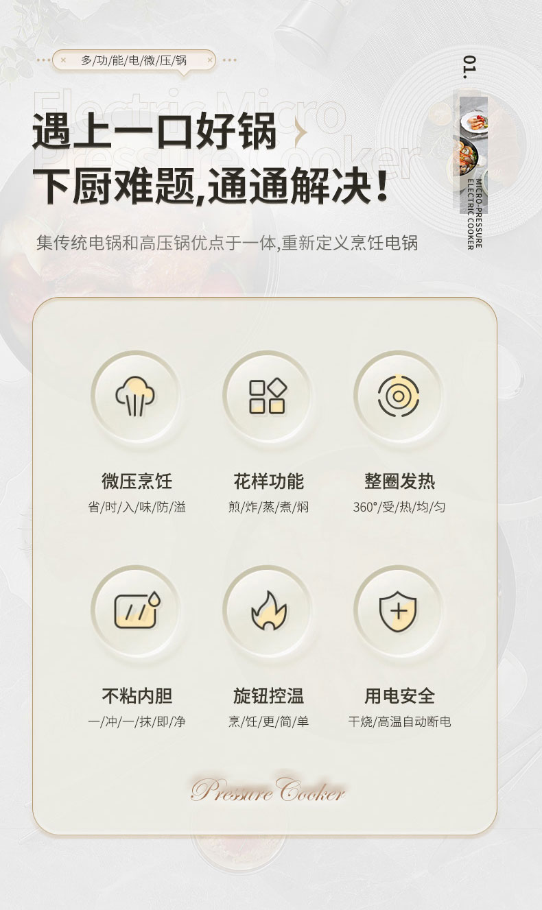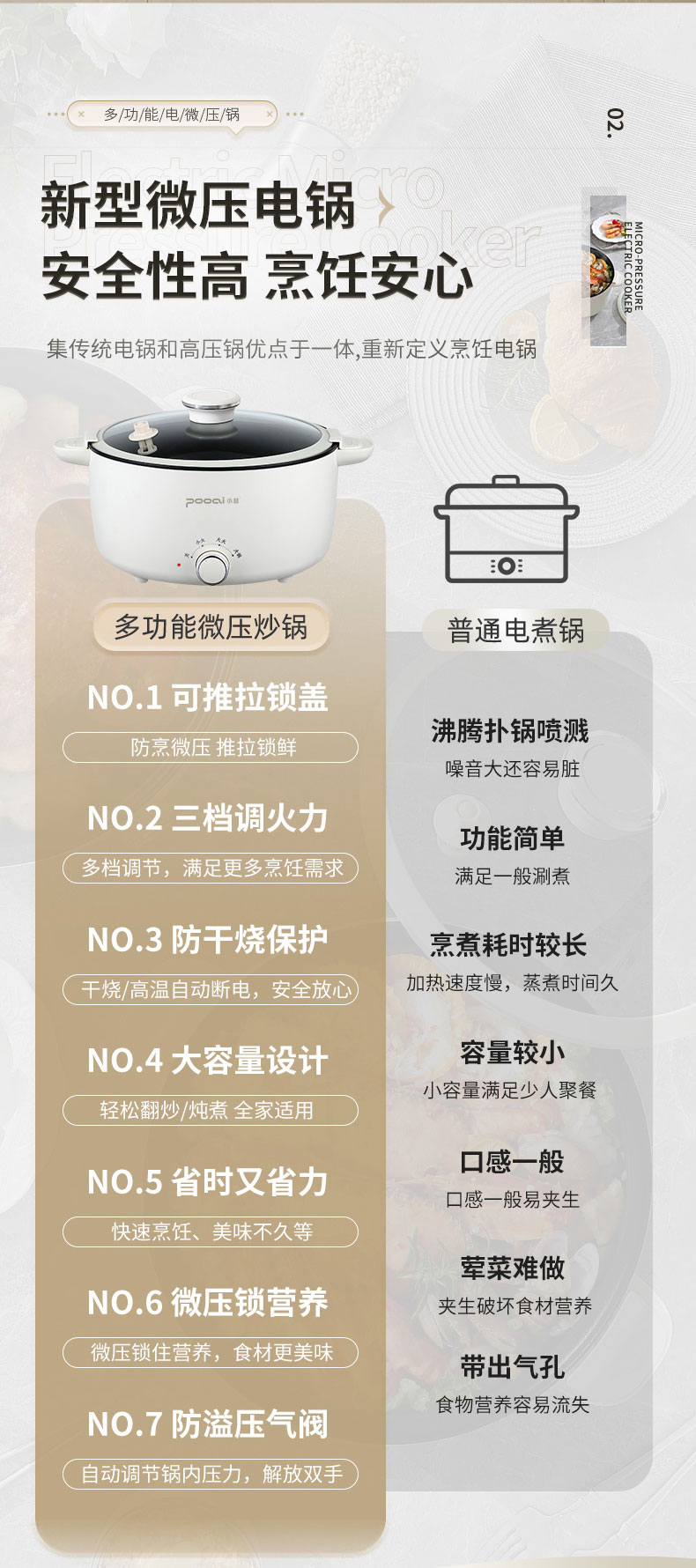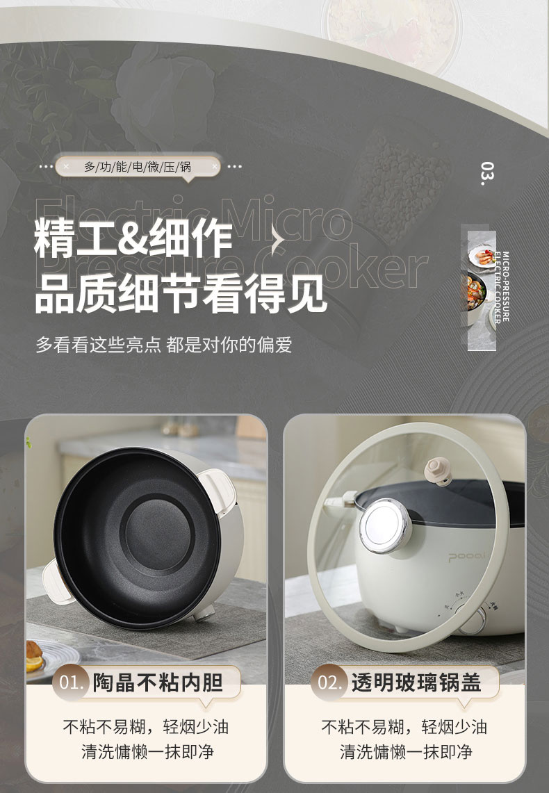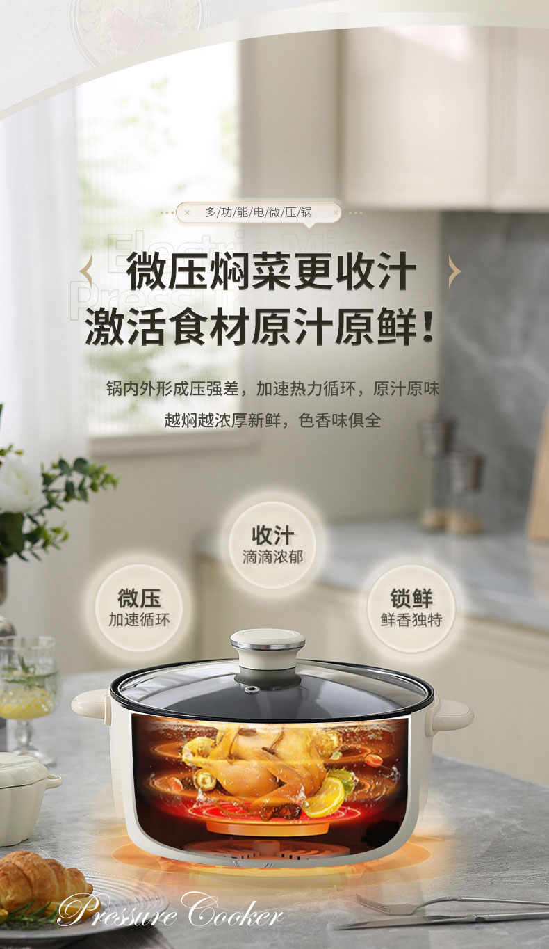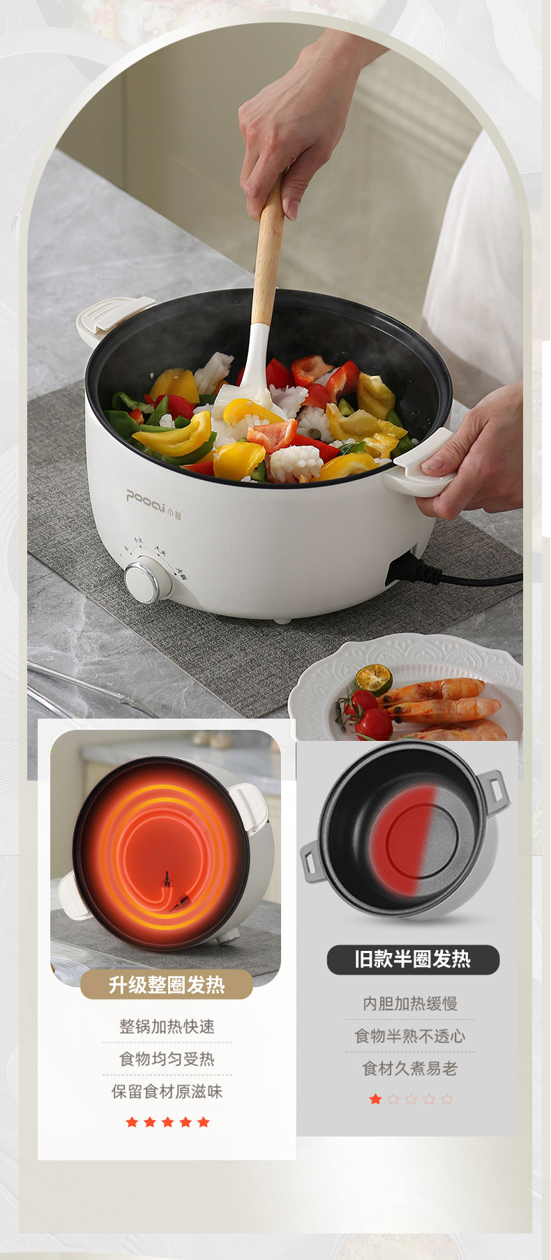 小普(POOAI)多功能电微压锅XY361,3.1L电火锅 带蒸笼*1(单位:台) 白色