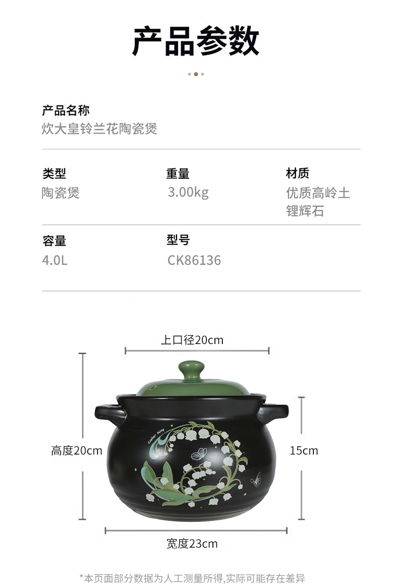 炊大皇铃兰花陶瓷煲4L CK86136(单位:个)