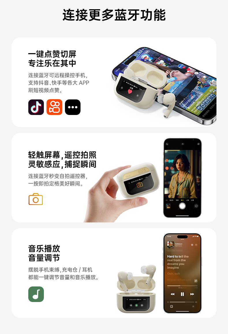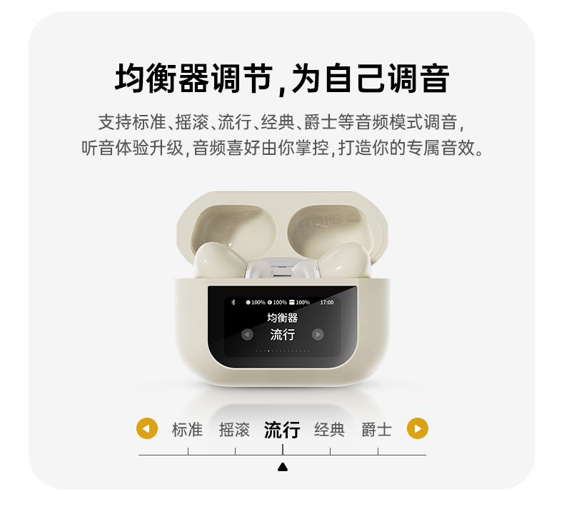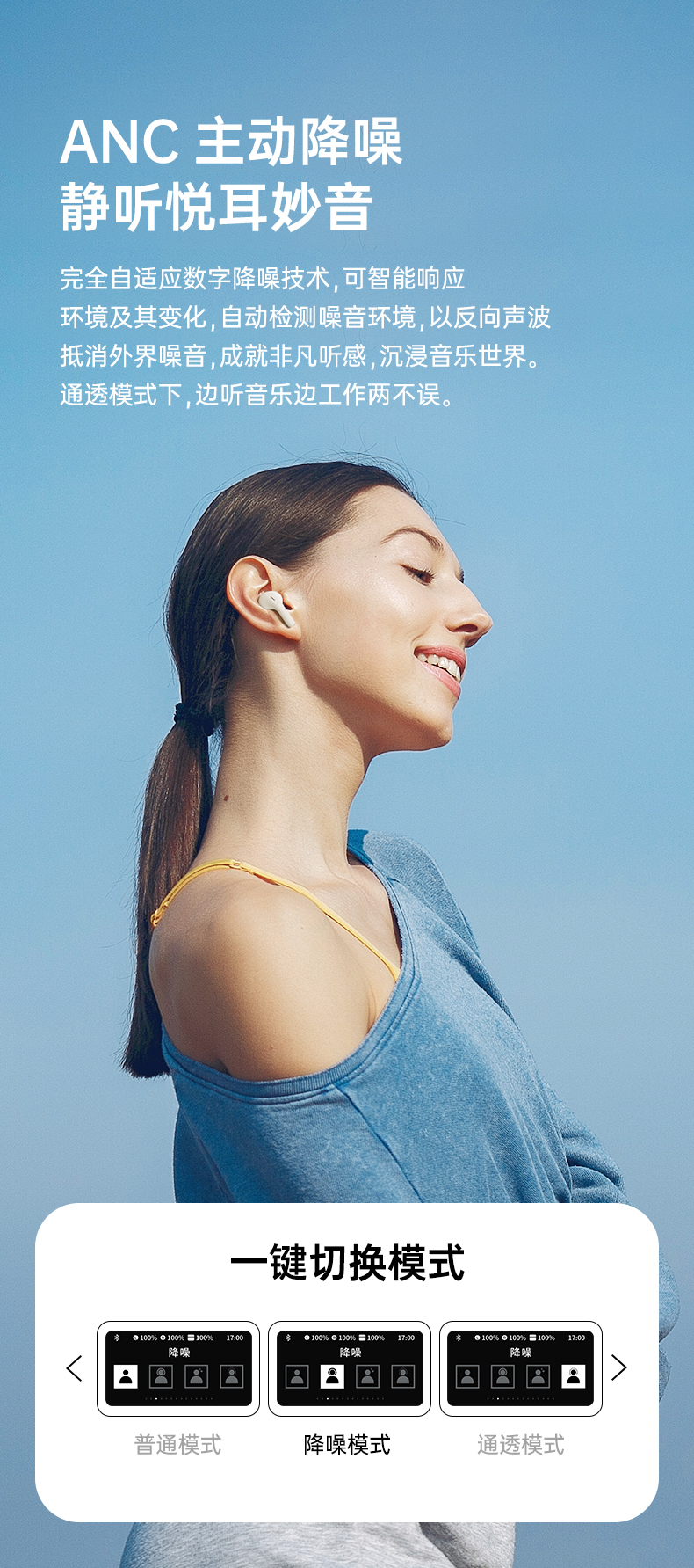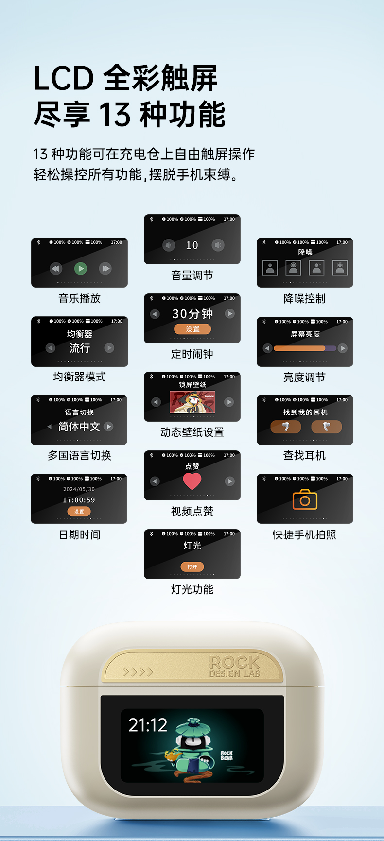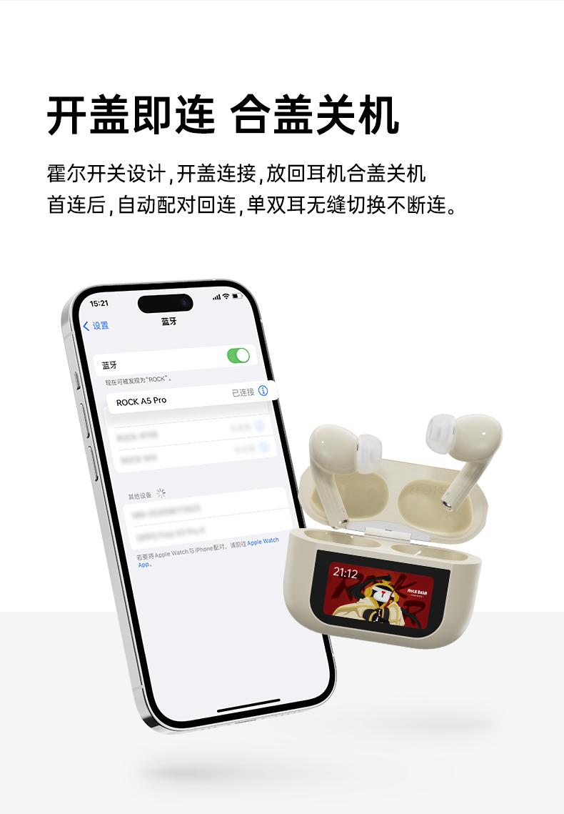 ROCK RAU0775 A5 Pro 智能屏ANC主动降噪蓝牙耳机 米白色(单位:个) 米白色