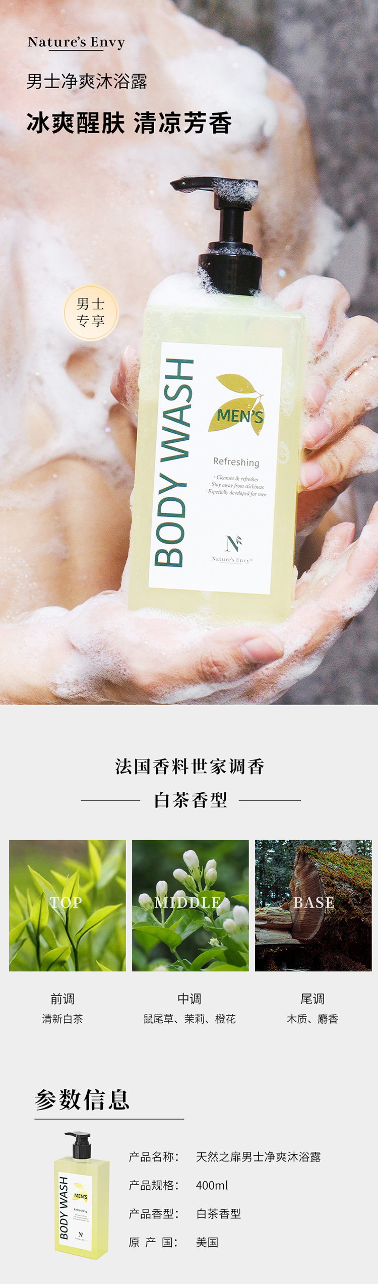 天然之扉 清爽洁净白茶香氛 男士净爽沐浴露 400ml(单位:瓶) 绿色