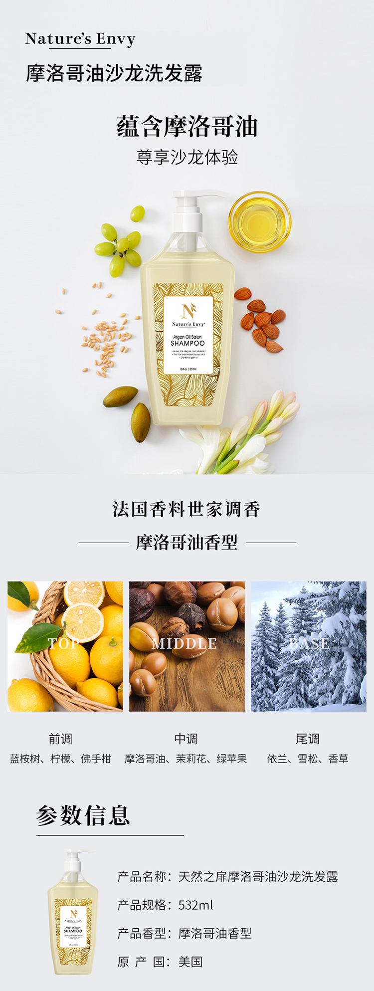 天然之扉 植物萃取 清洁顺滑美国进口男女洗发液 摩洛哥油沙龙洗发露 532ml(单位:瓶) 透明