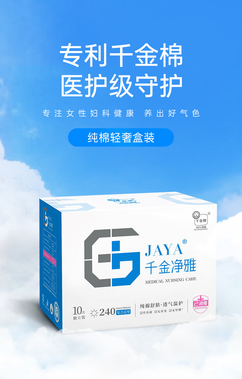 千金净雅医护级纯棉卫生巾盒装超薄日夜用240mm*10片/盒*1盒(单位:盒) 白色