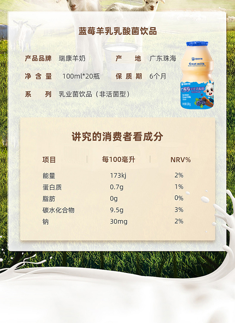 瑞康乳业羊奶原味乳酸菌100ml*20/箱 橙色