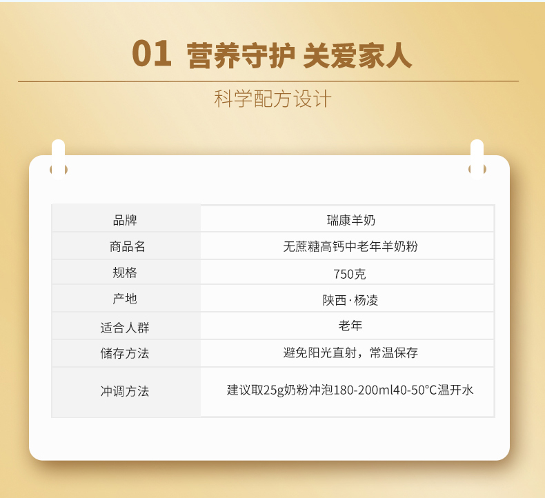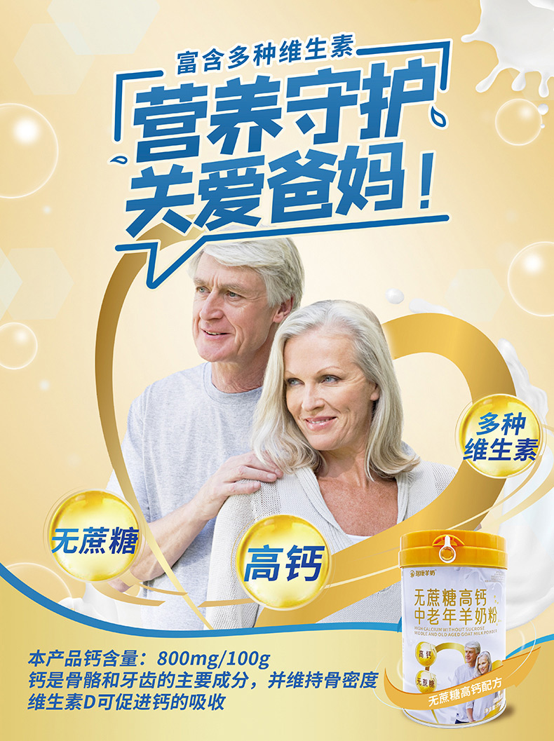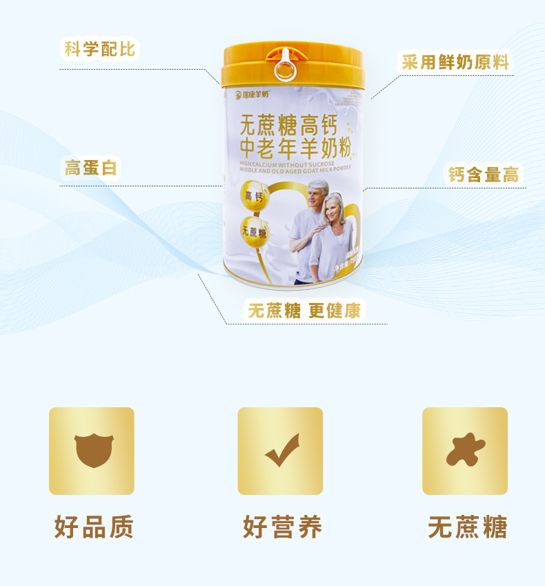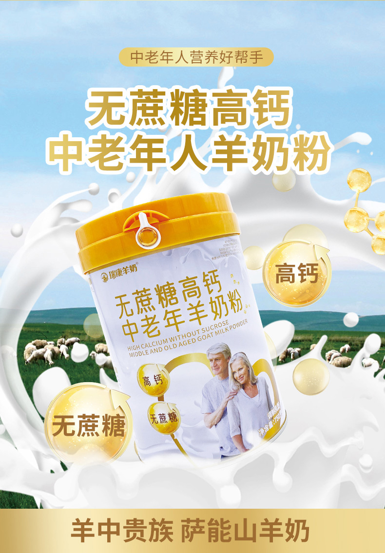 瑞康乳业羊奶中老年无蔗糖高钙羊乳粉750g /罐 橙色