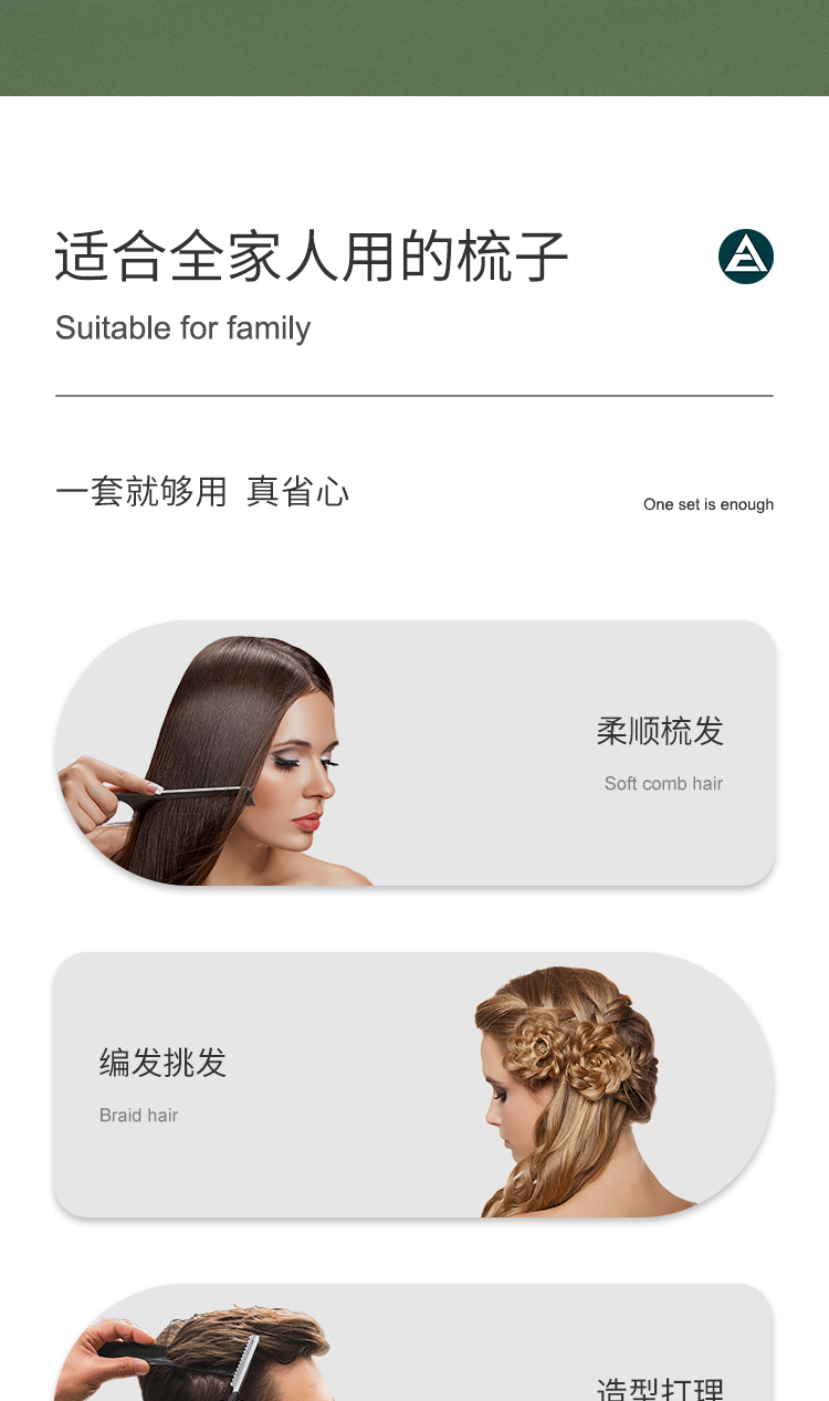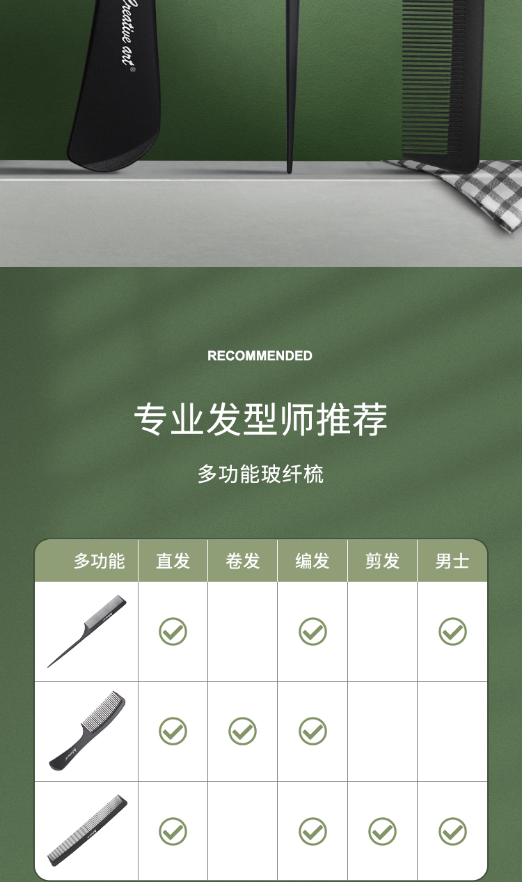 Creative art 碳纤梳子三件套+指甲刀三件套组合套装 (单位:套) 黑色+白色