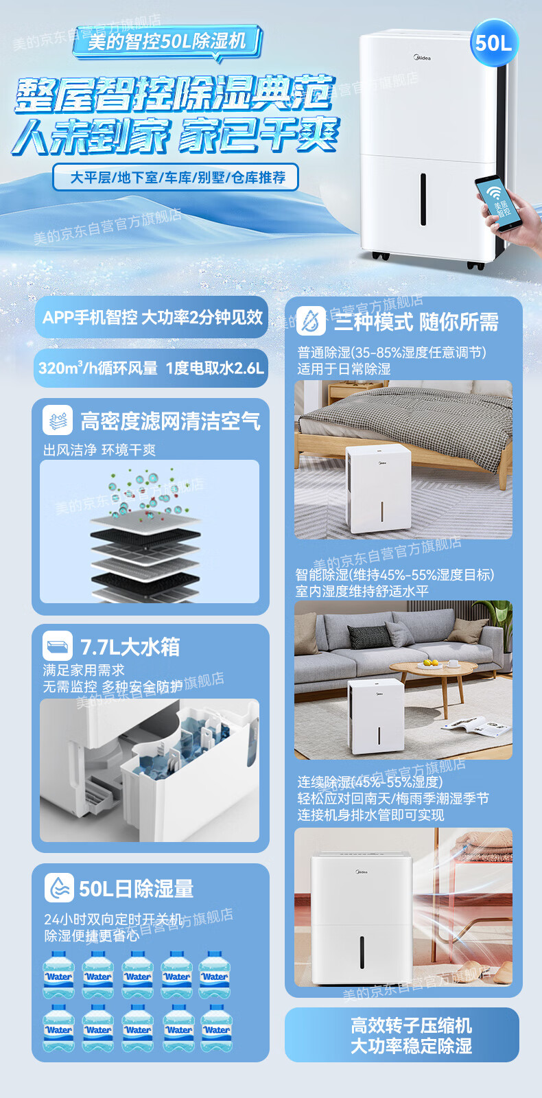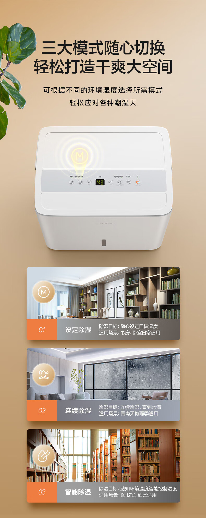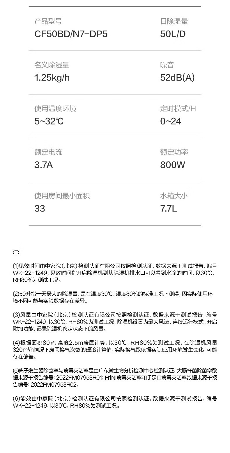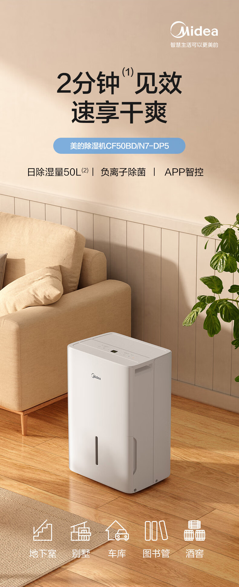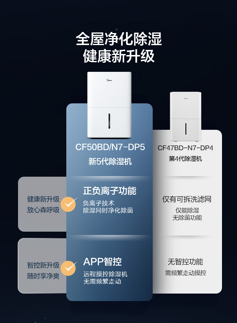 美的(Midea)除湿机抽湿机 50L容量 CF50BD/N7-DP51(单位:台) 白色