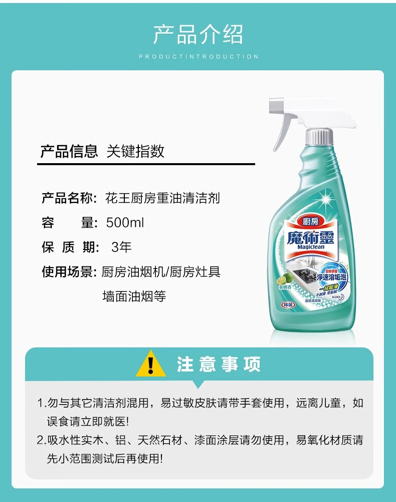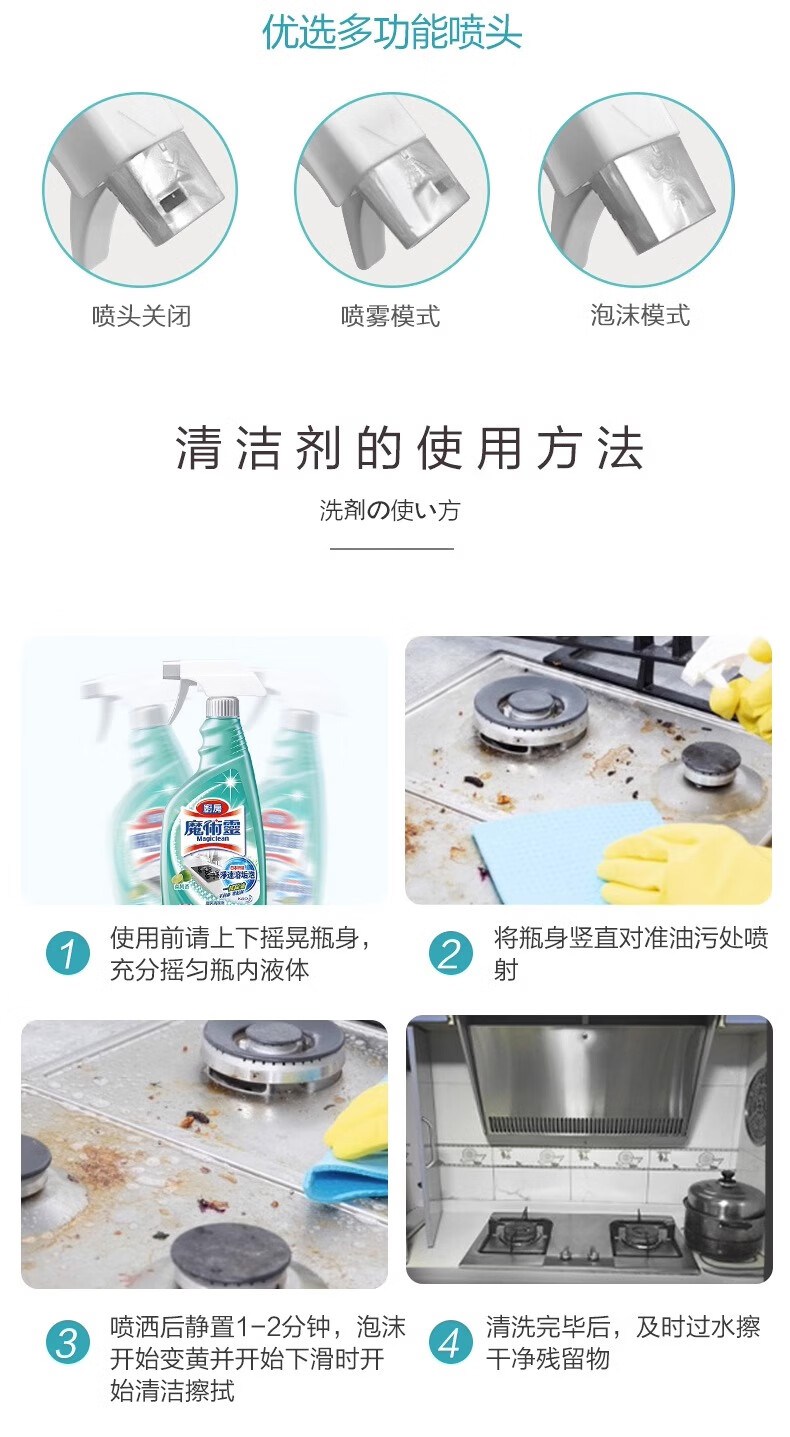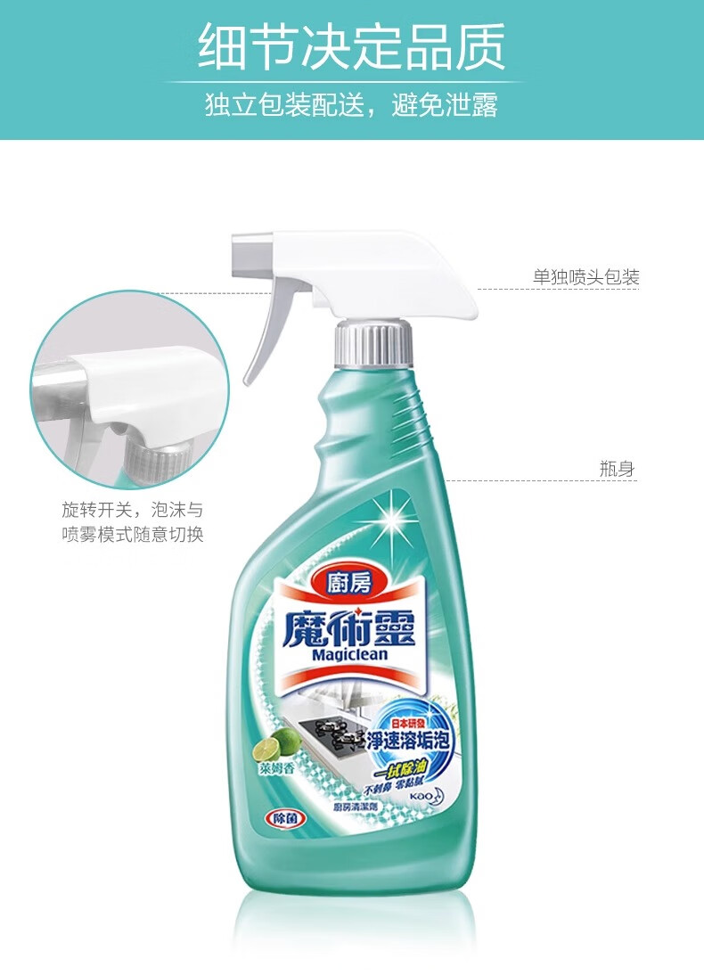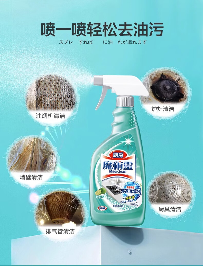 花王(KAO)魔术灵厨房油污清洁剂莱姆香500ml*3 (单位:瓶) 极光色