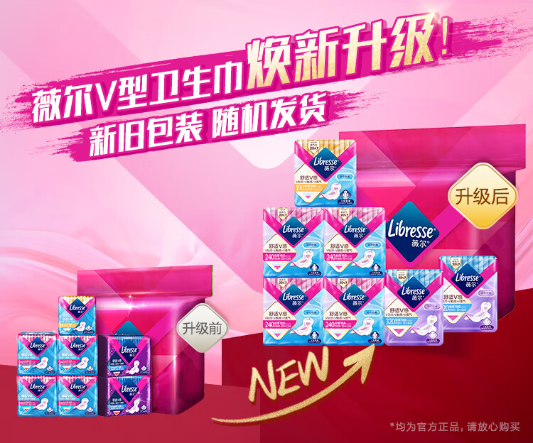 薇尔日夜组合卫生巾姨妈巾套装舒适V感囤货套装7包70片(单位:包) 佳人粉