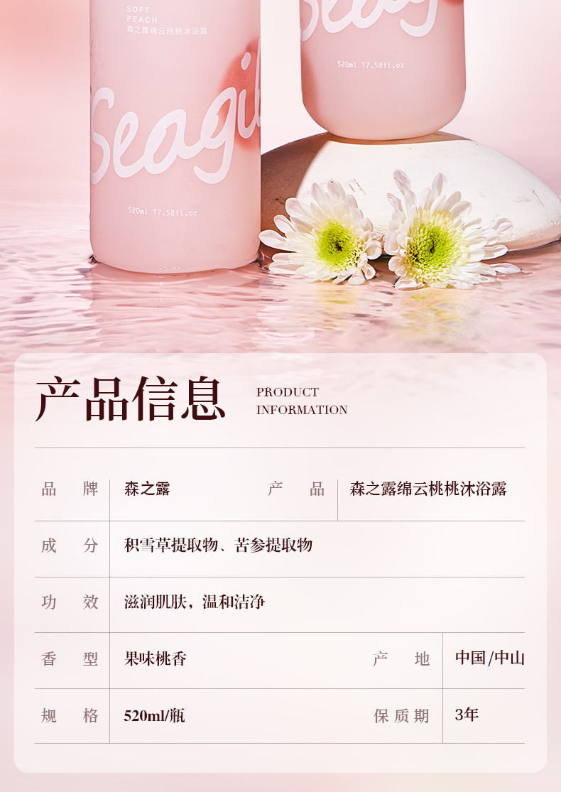 森之露(Seagilon) 沐浴露 520ml 棉云桃桃SZL-03 粉色(单位:支)