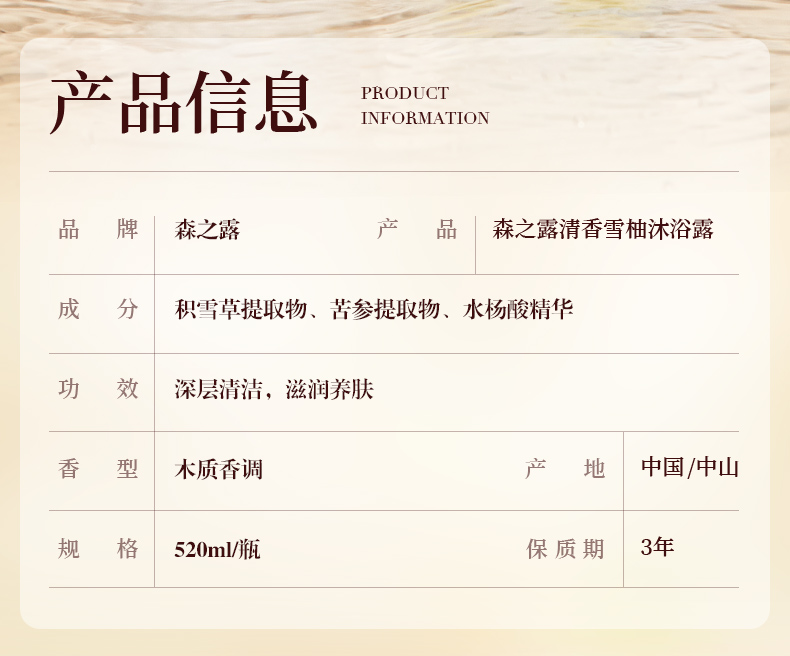 森之露(Seagilon) 沐浴露 520ml 清香雪柚SZL-05 白色(单位:支)