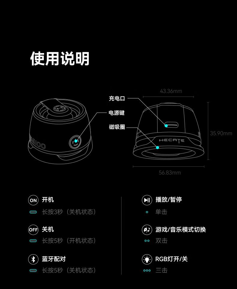 漫步者 G100 蓝牙5.3 便携式蓝牙磁吸小音箱 黑色(单位:个)