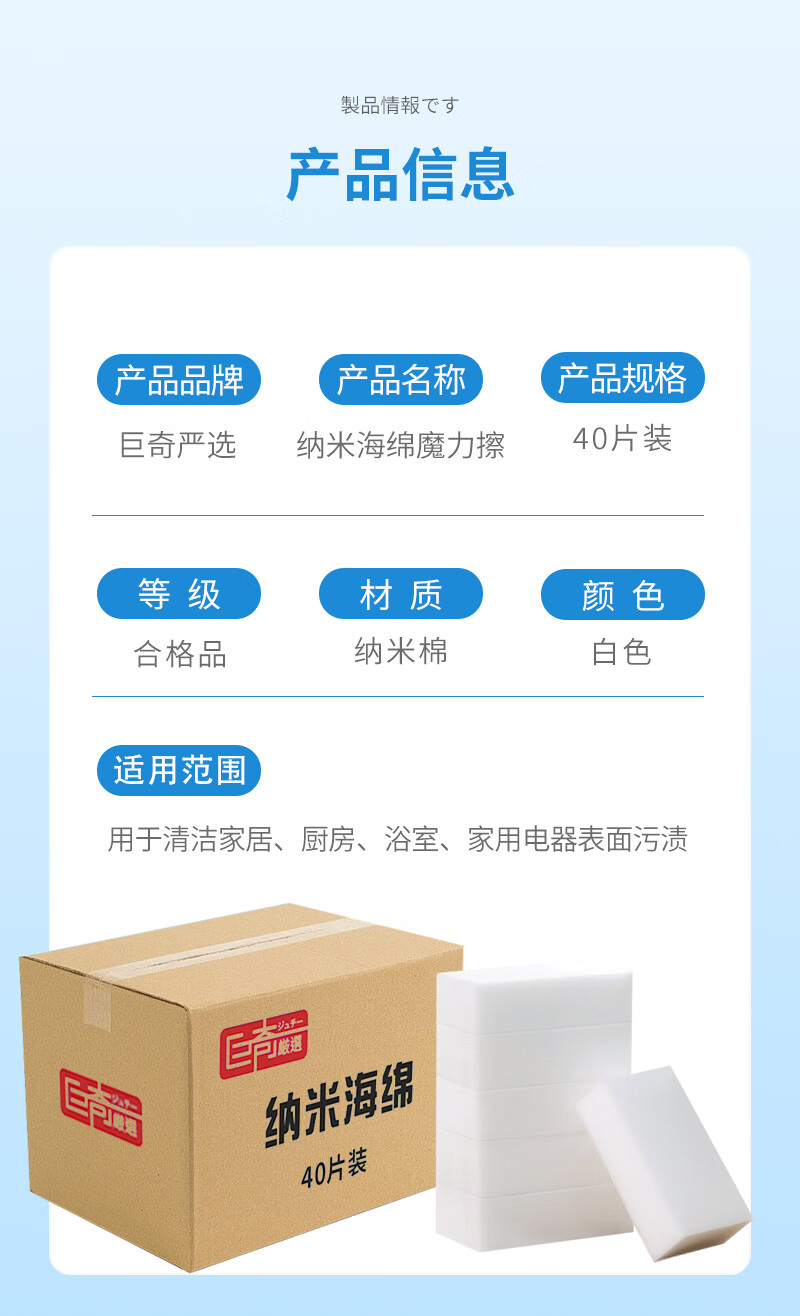 巨奇(JUQI) 纳米海绵擦 40片/套 魔力擦 白色(单位:套)