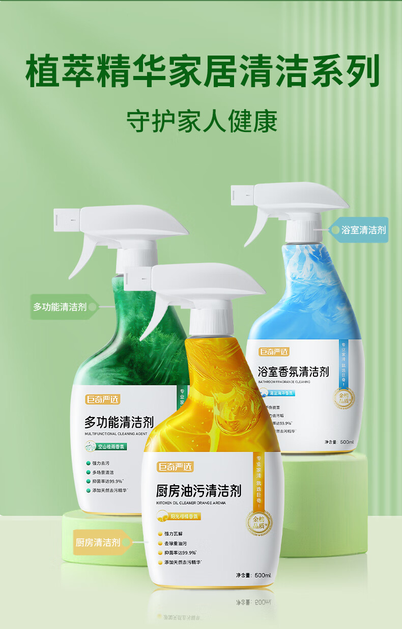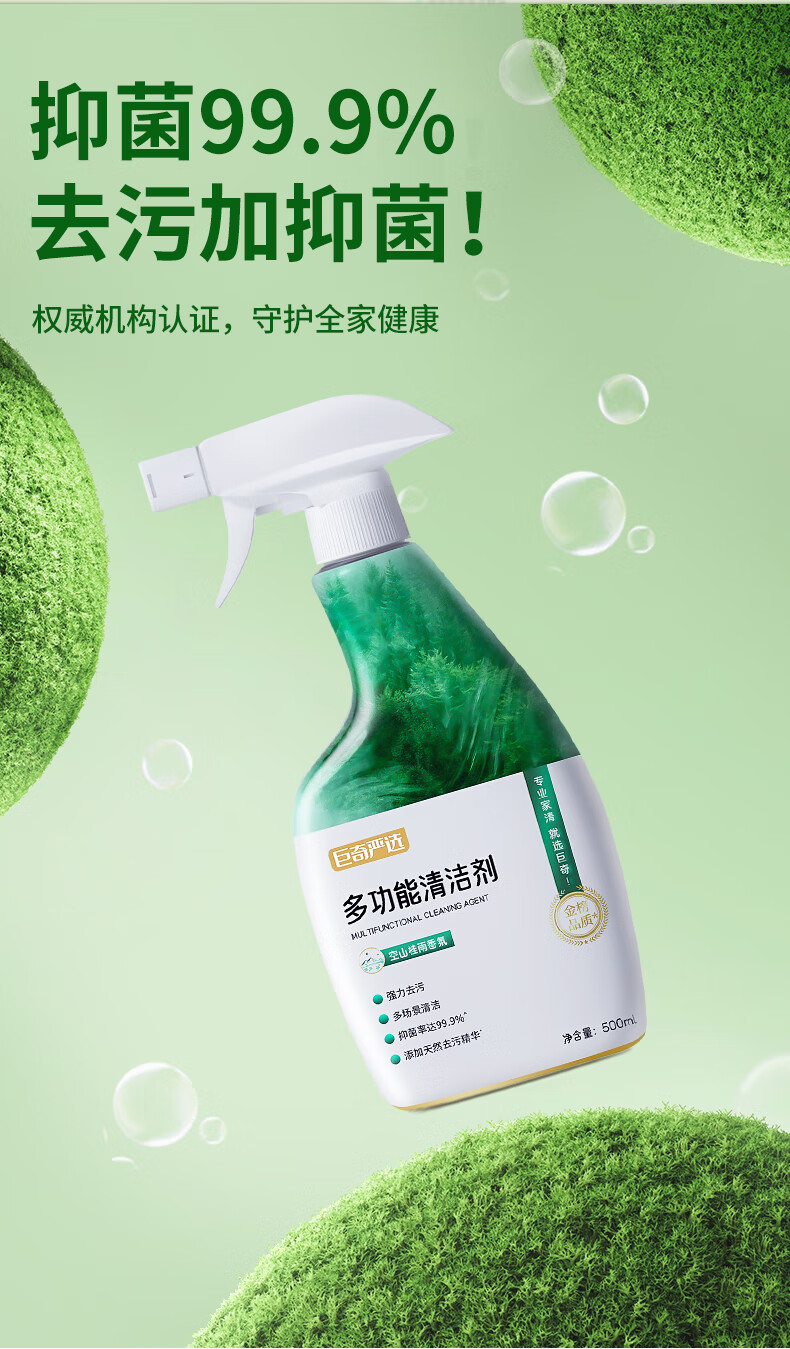 巨奇(JUQI) 多功能清洁剂 500ml*2(含1块百洁布+1个缝隙刷) 浴室清洁彩盒套装 绿色(单位:套)