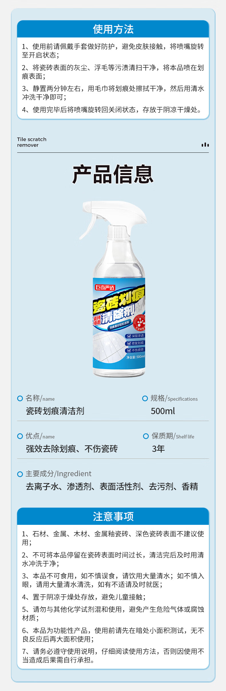 巨奇(JUQI) 瓷砖划痕清洁剂 500ml 除痕剂 蓝色(单位:瓶)