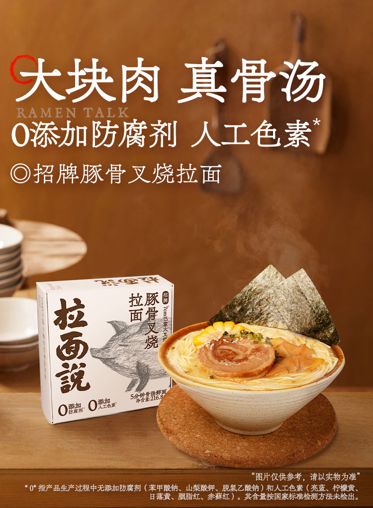 拉面说儿 非油炸方便面 速食懒人面品 四盒装 招牌豚骨叉烧拉面216.8*4盒 白色(单位:组)