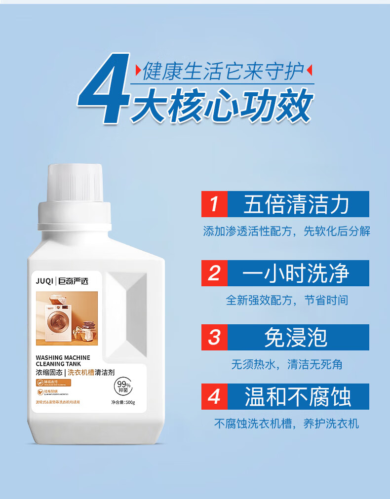 巨奇(JUQI) 洗衣机槽清洁剂 500g*2瓶 深度清洁 白色(单位:套)
