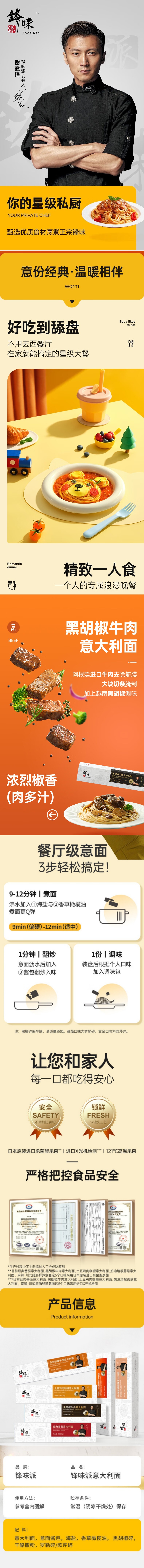 锋味派 黑胡椒牛肉意大利面 280g*3 意面组合 藏青色(单位:份)