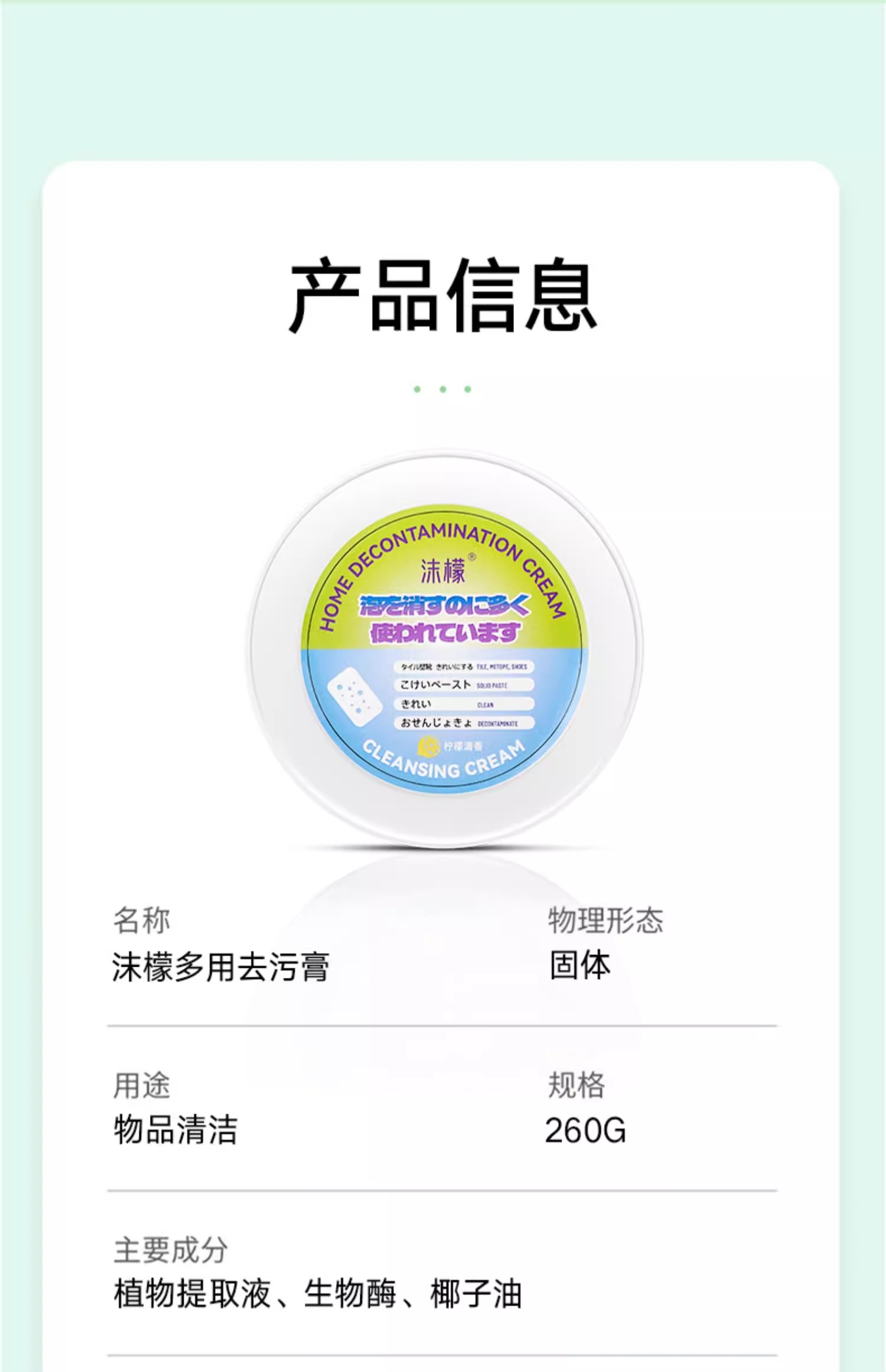 沫檬 多功能清洁膏 260g 去污增白 白色(单位:盒)