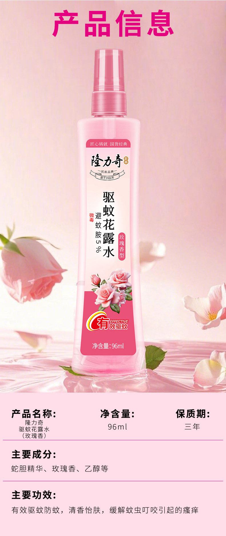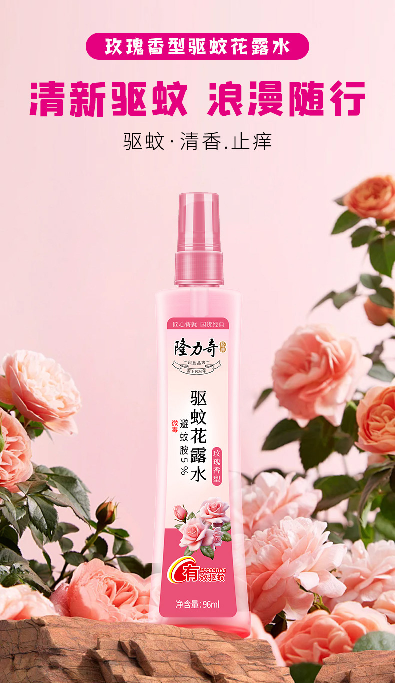 隆力奇 LLQ-202503004 96ml 玫瑰香型驱蚊花露水 玫瑰粉(单位:瓶)