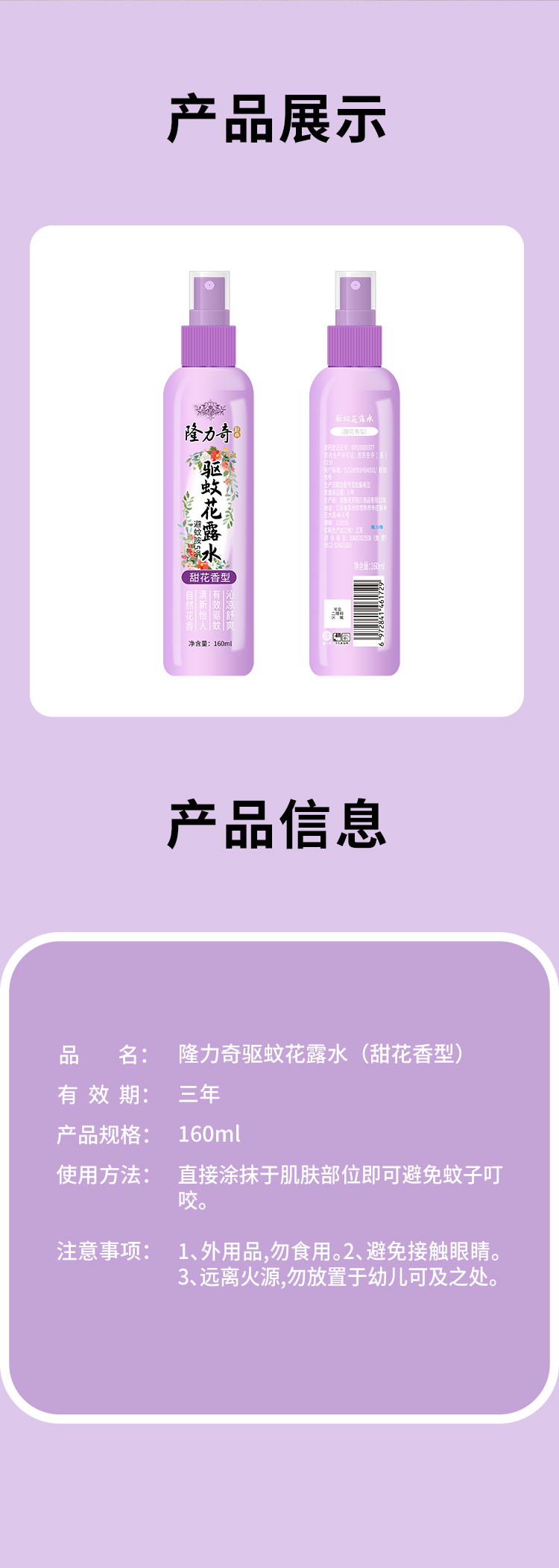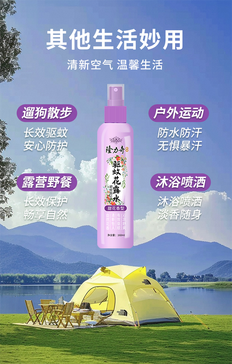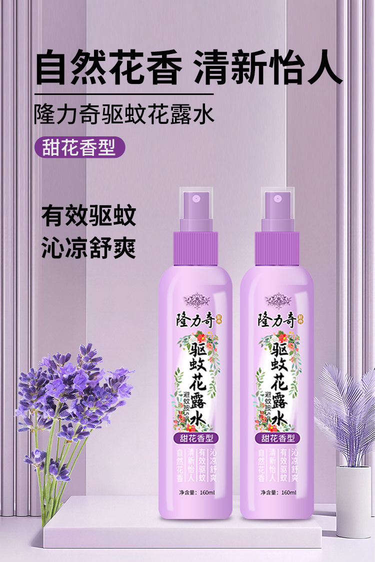 隆力奇 LLQ-202504291 160ml 甜花香型驱蚊花露水 佳人粉(单位:瓶)