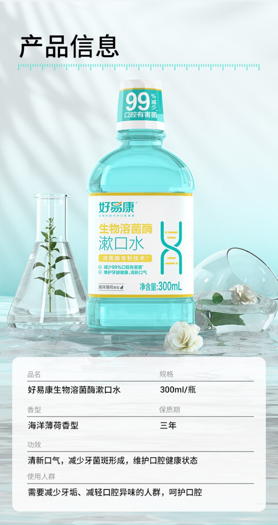 好易康 漱口水(海洋薄荷) 300ml 生物溶菌酶 尼加拉蓝(单位:瓶)