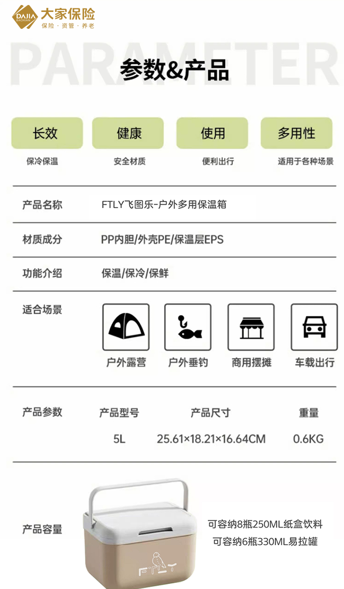 飞图乐(FTLY) 露营保温箱冷藏箱 BWX0001 5L 卡其色(单位:个)