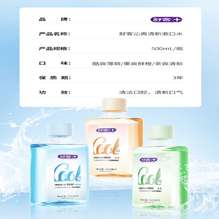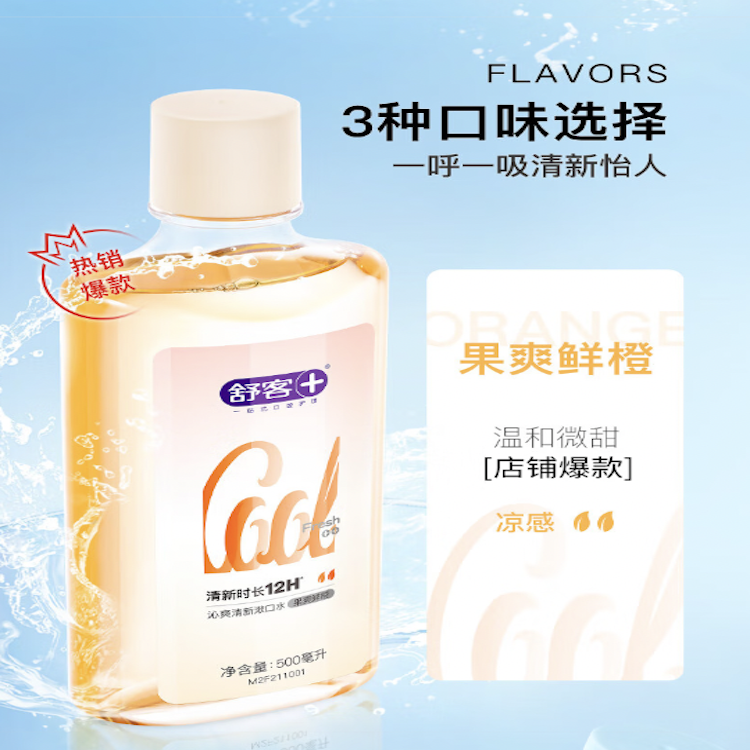 舒客 漱口水 (果爽鲜橙)沁爽清新 500ML 混色(单位:瓶)