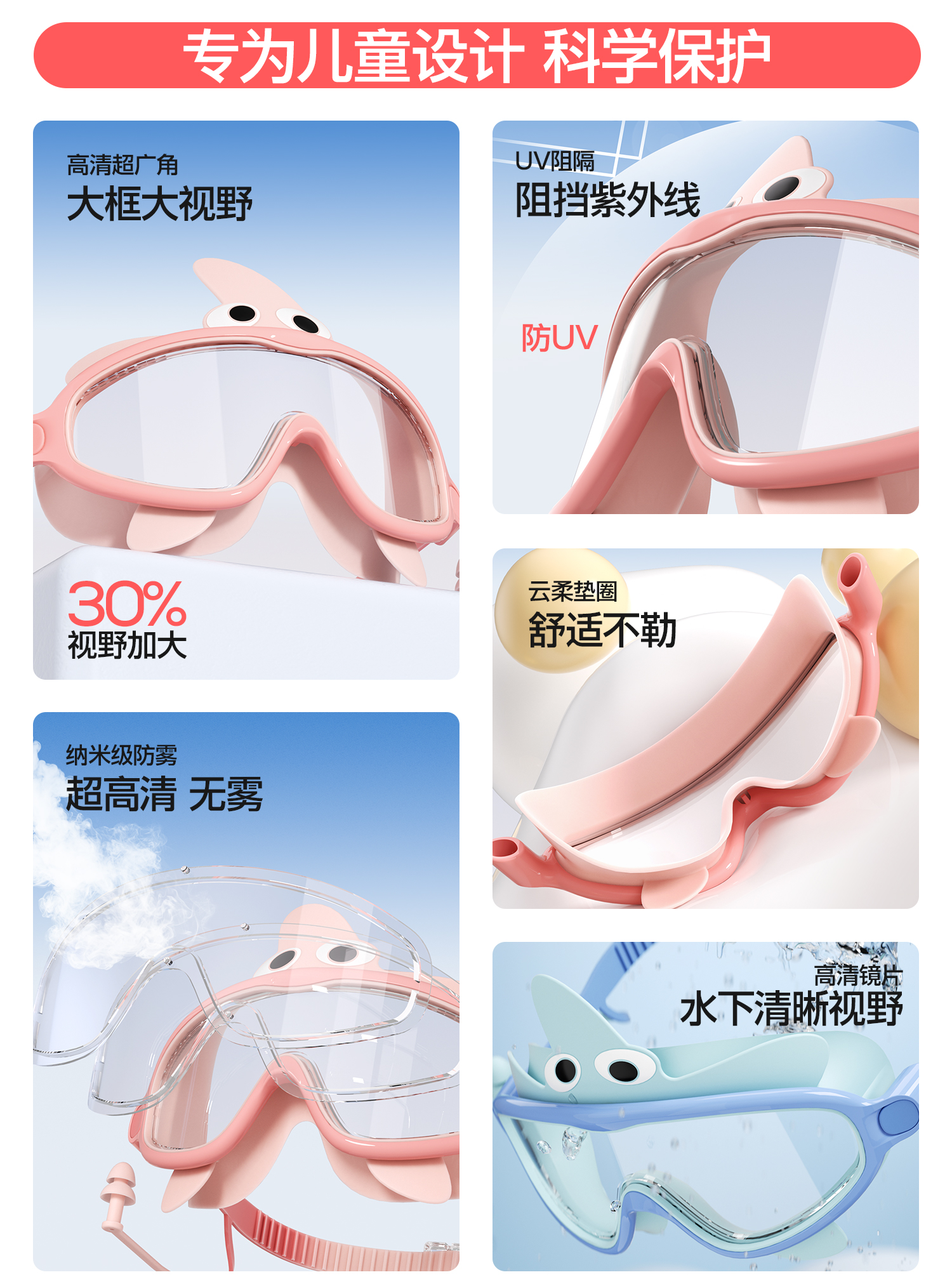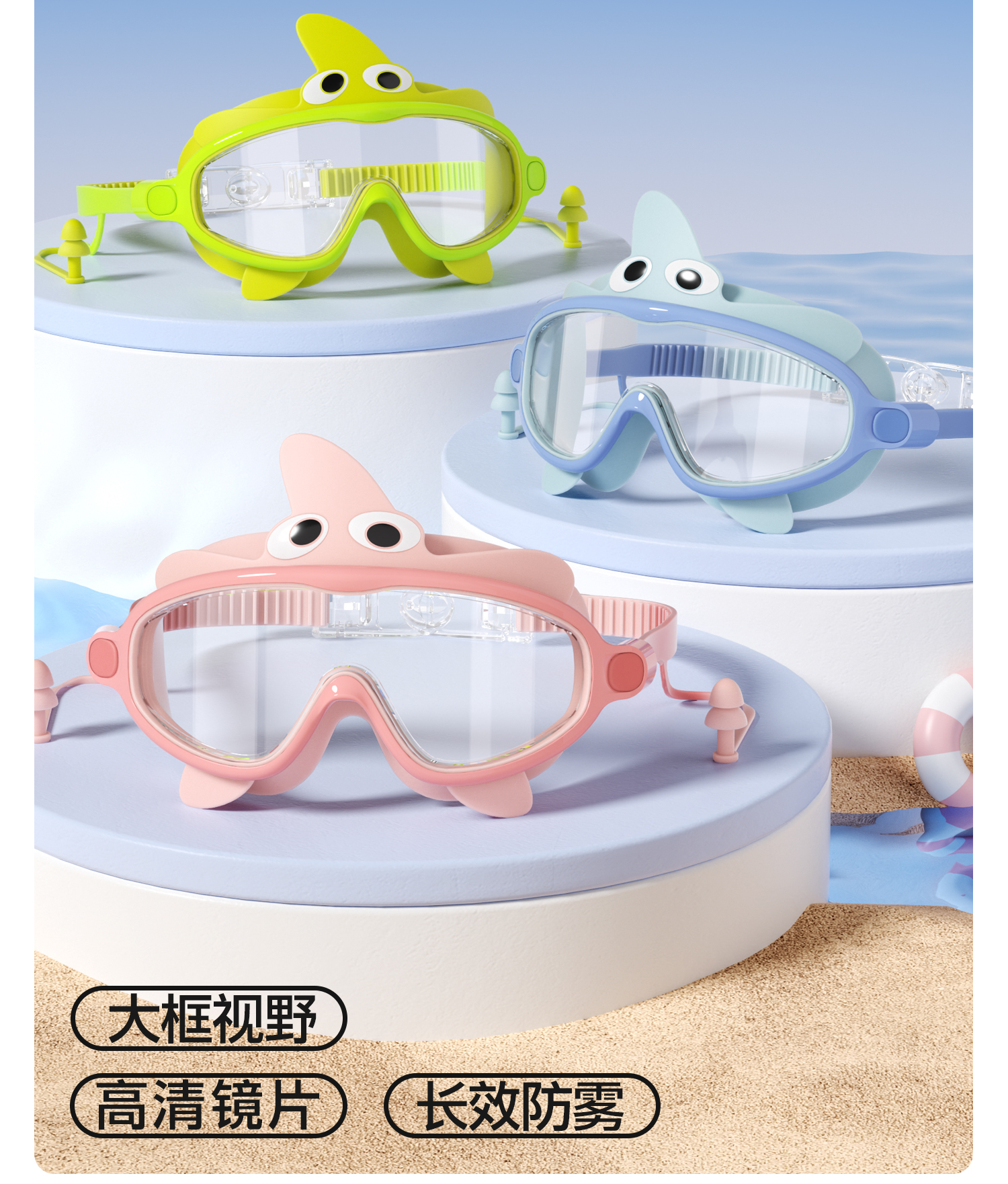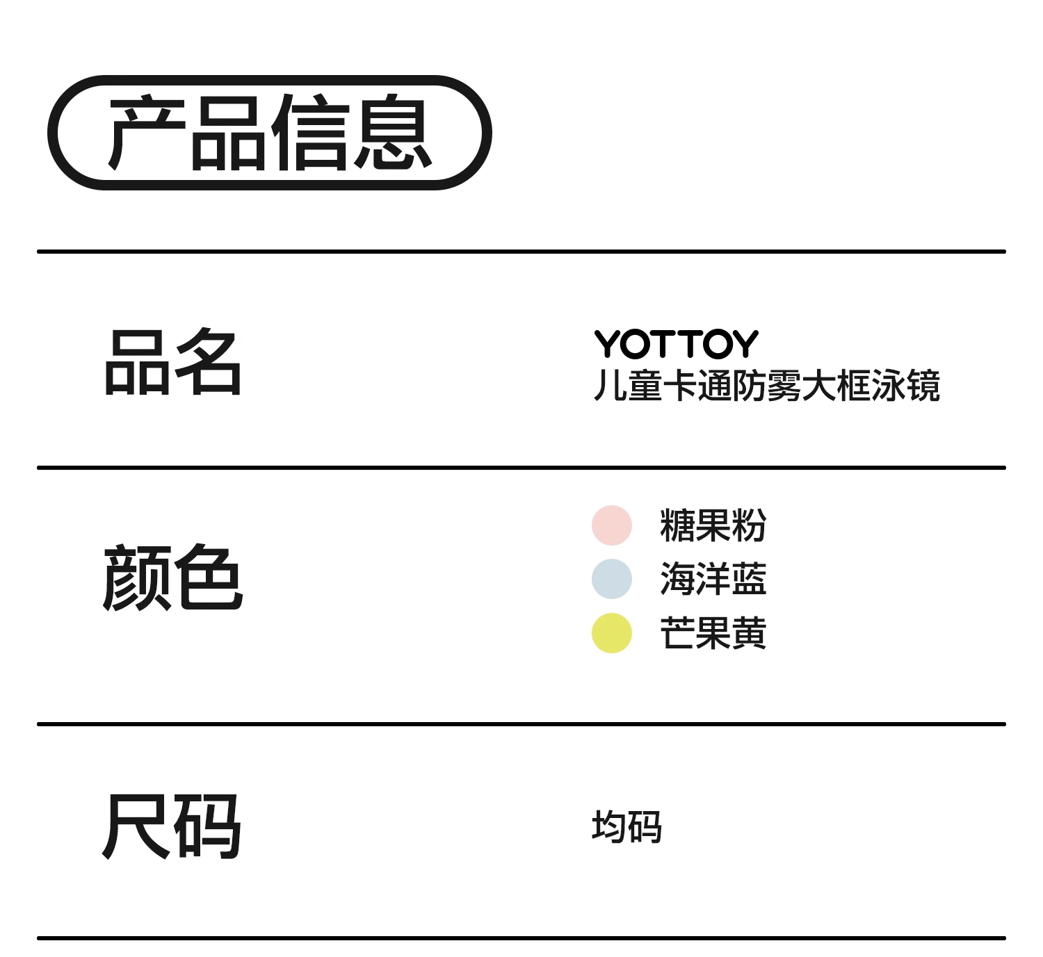 YOTTOY 儿童大框泳镜卡通款 yyyj2504x1A000F0000a002 100g 糖果粉(单位:副)