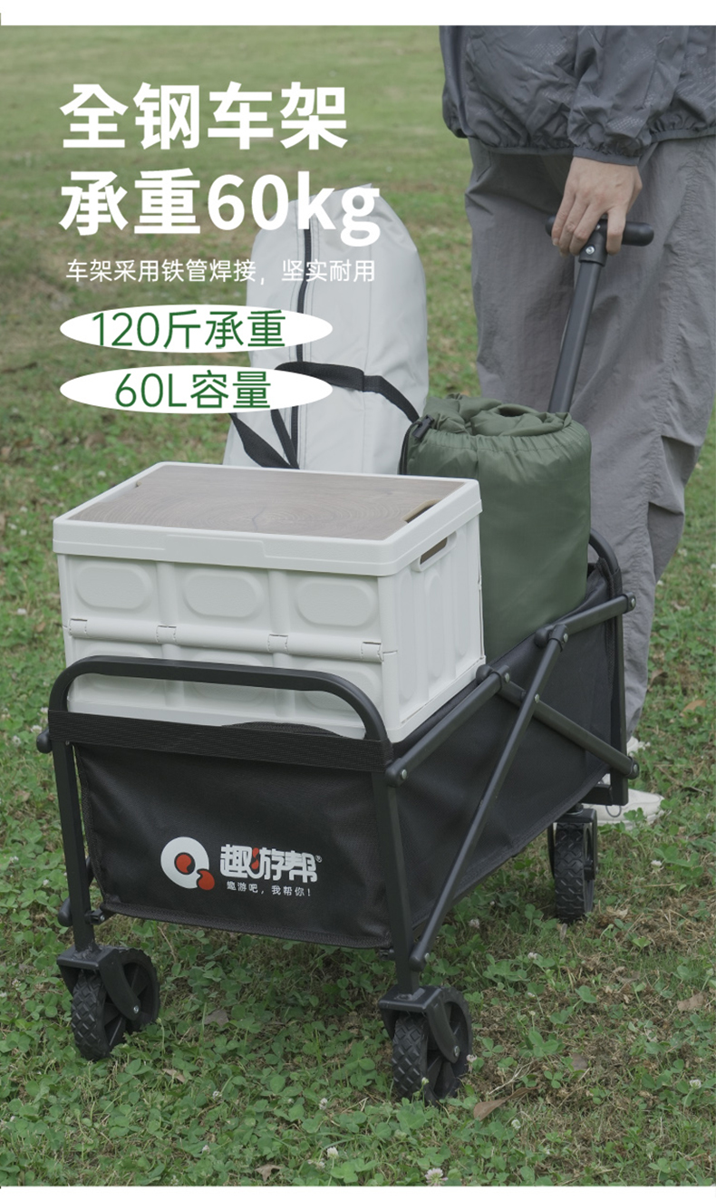趣游帮 【折叠露营车+折叠桌椅三件套】户外组合套装 YB06/Y703 4件 曜石黑(单位:套)