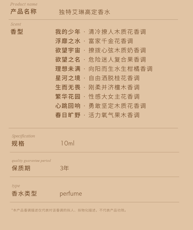独特艾琳(Dear lrean) 香水 我的少年 10ml 透明(单位:支)