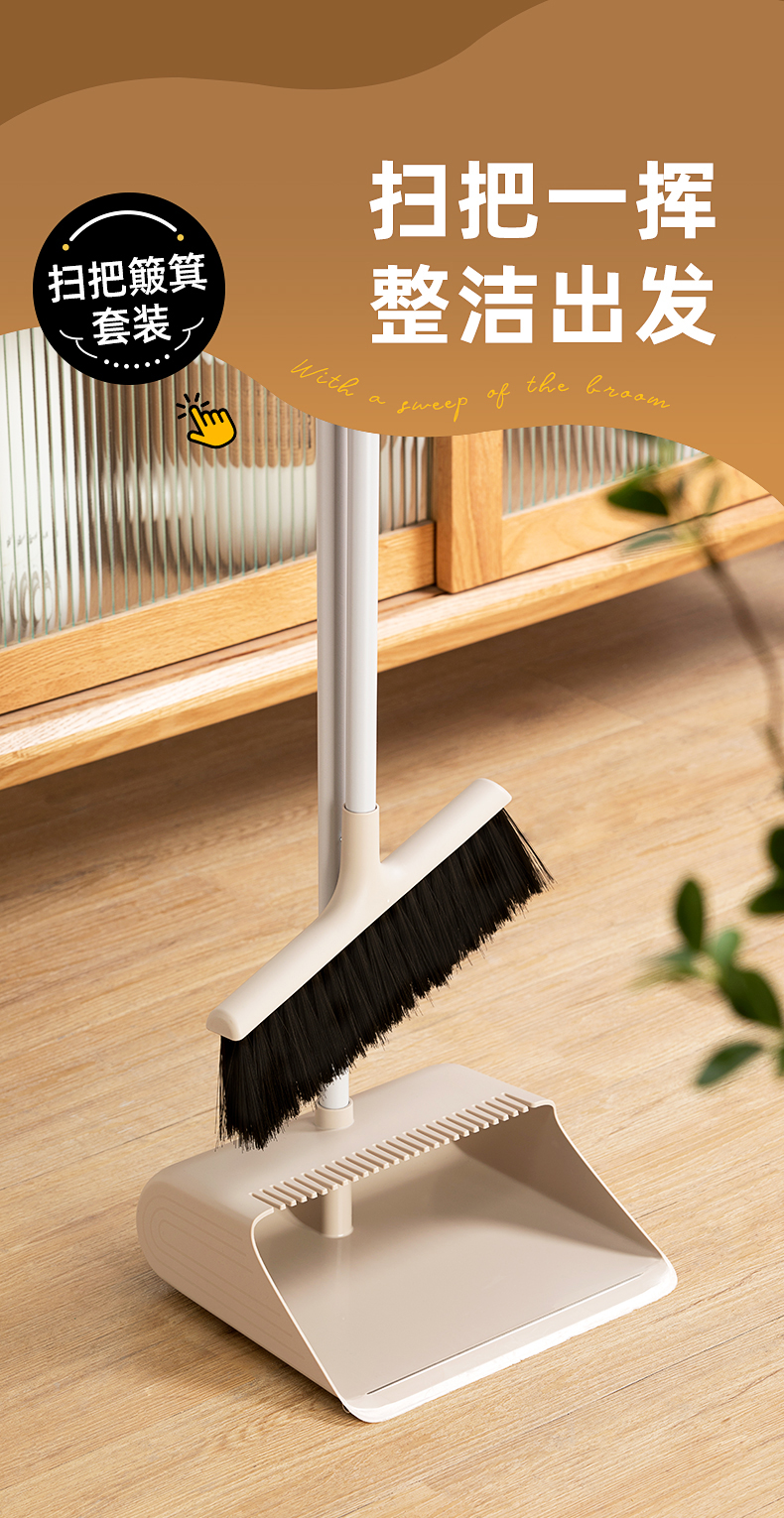 茶花(CHAHUA) 致洁扫把套装 213003 28*25*105cm【扫把+簸箕】 咖啡色(单位:套)