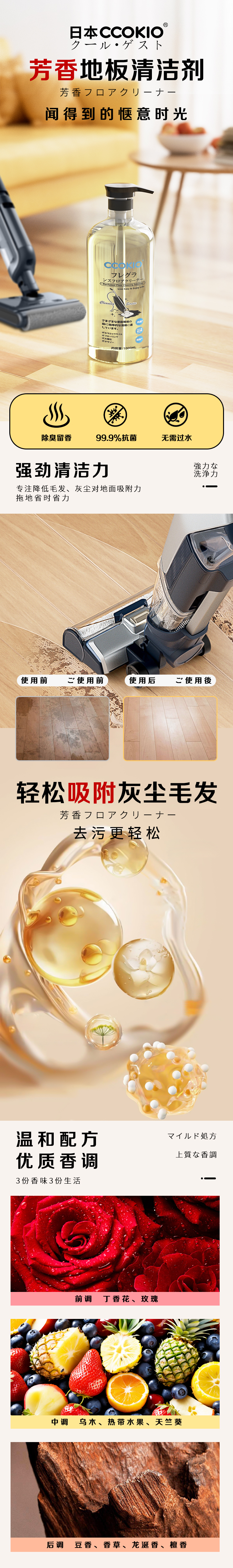 酷优客(CCOKIO) 地板清洁剂 植物芳香 1kg*3瓶 黄色(单位:组)