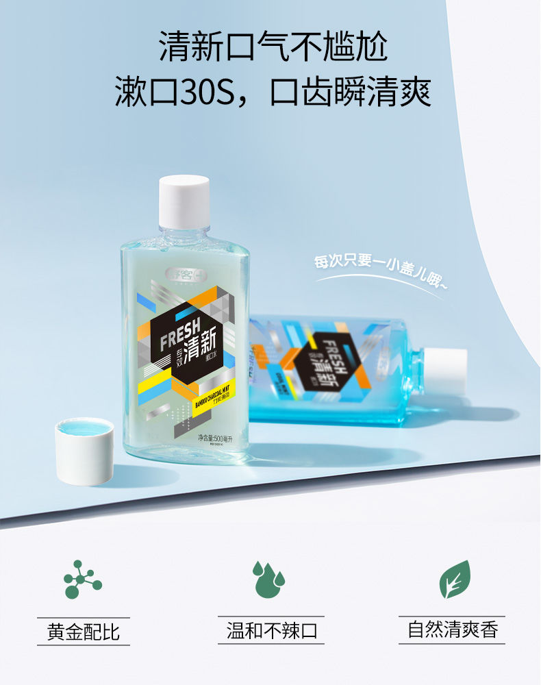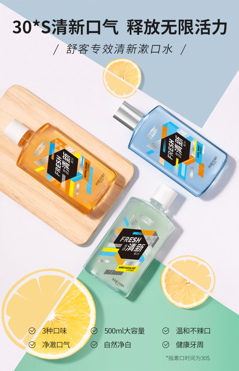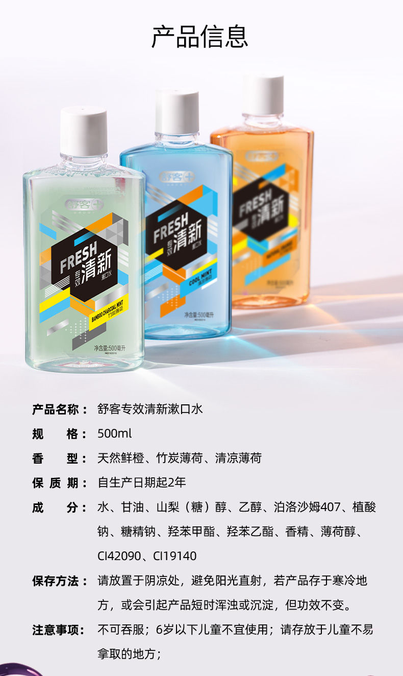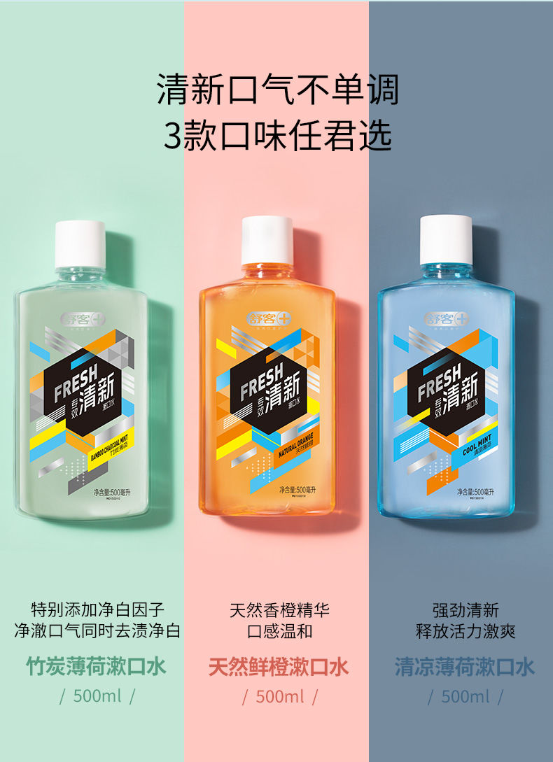 舒客 漱口水 清凉薄荷 500ml*2 蓝色(单位:组)