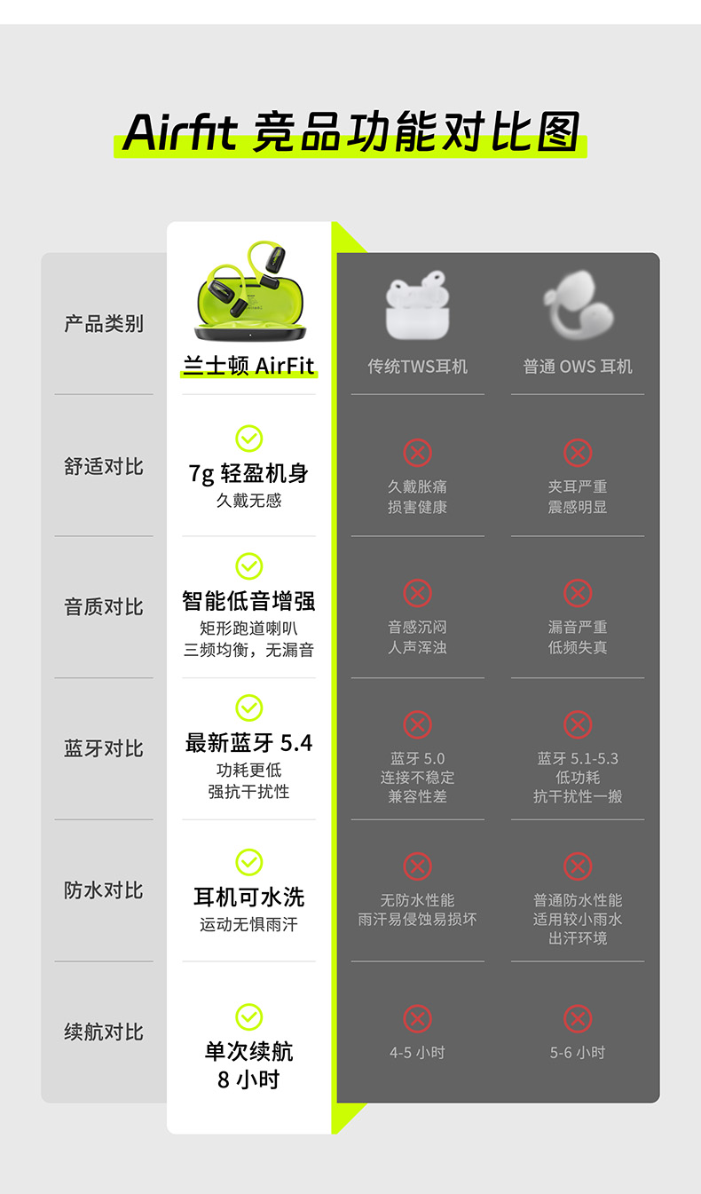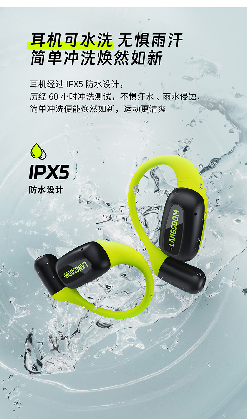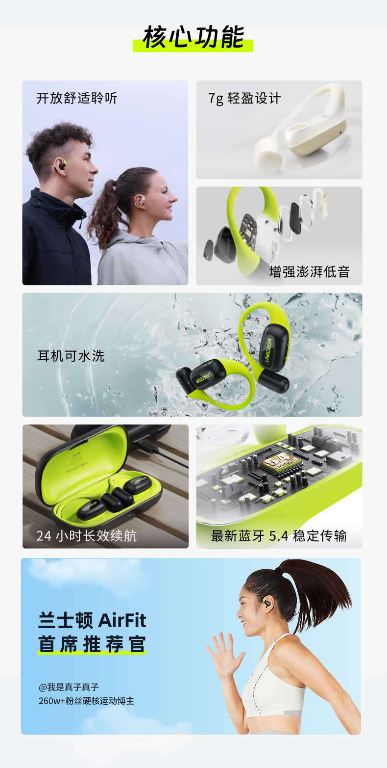 兰士顿 可水洗不入耳运动蓝牙耳机 AirFit (TS15) 电池容量55mAh*2/400mAh 萤火绿(单位:对)