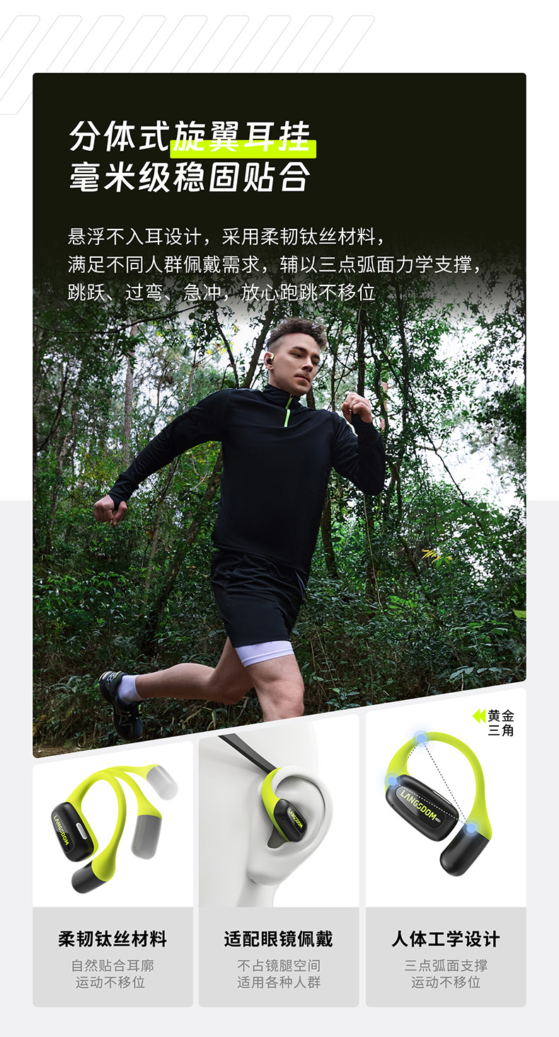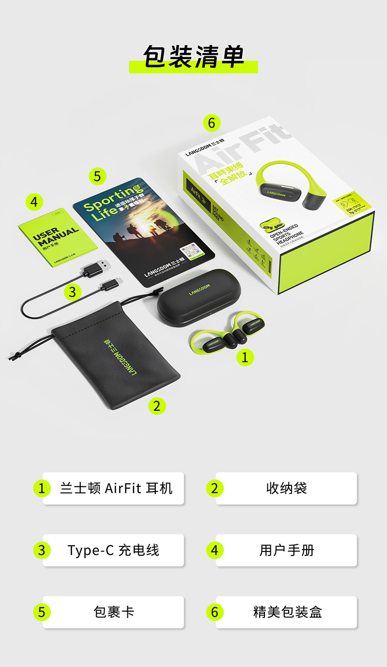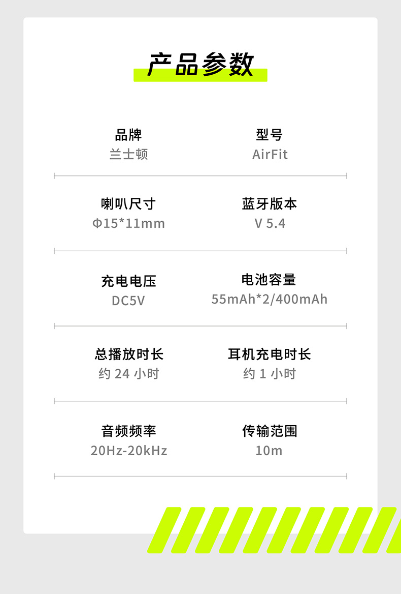 兰士顿 可水洗不入耳运动蓝牙耳机 AirFit (TS15) 电池容量55mAh*2/400mAh 萤火绿(单位:对)
