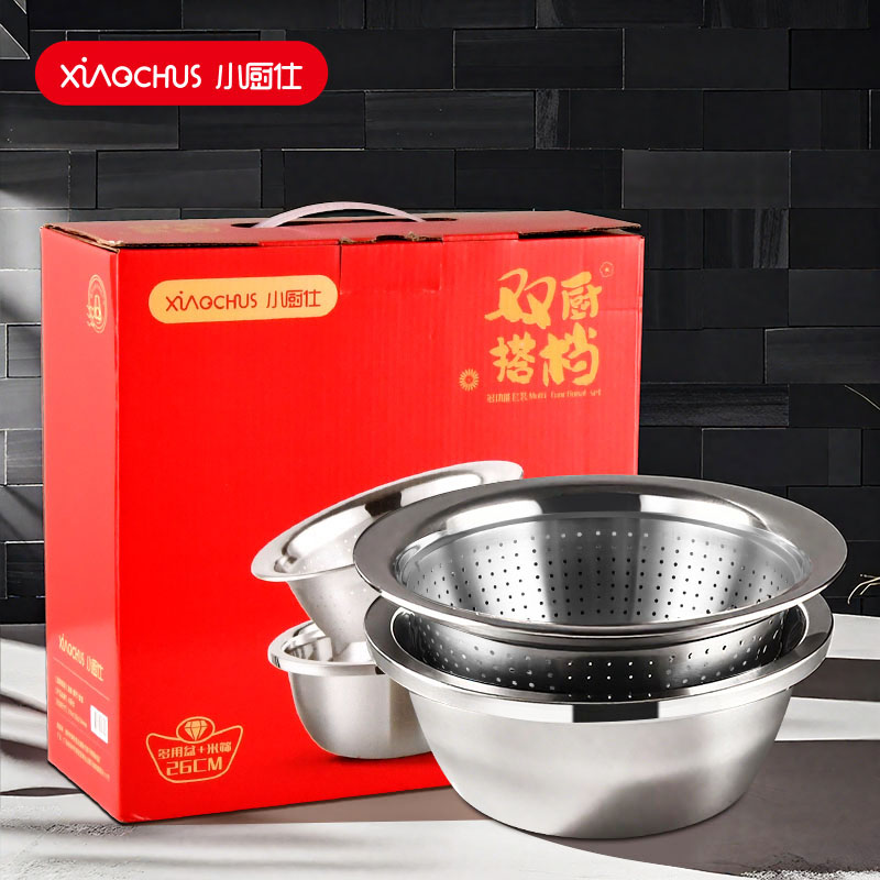 小厨仕(xiaochushi) 洗菜盆+米筛 xcs-008 26CM/26CM 银色(单位:套)