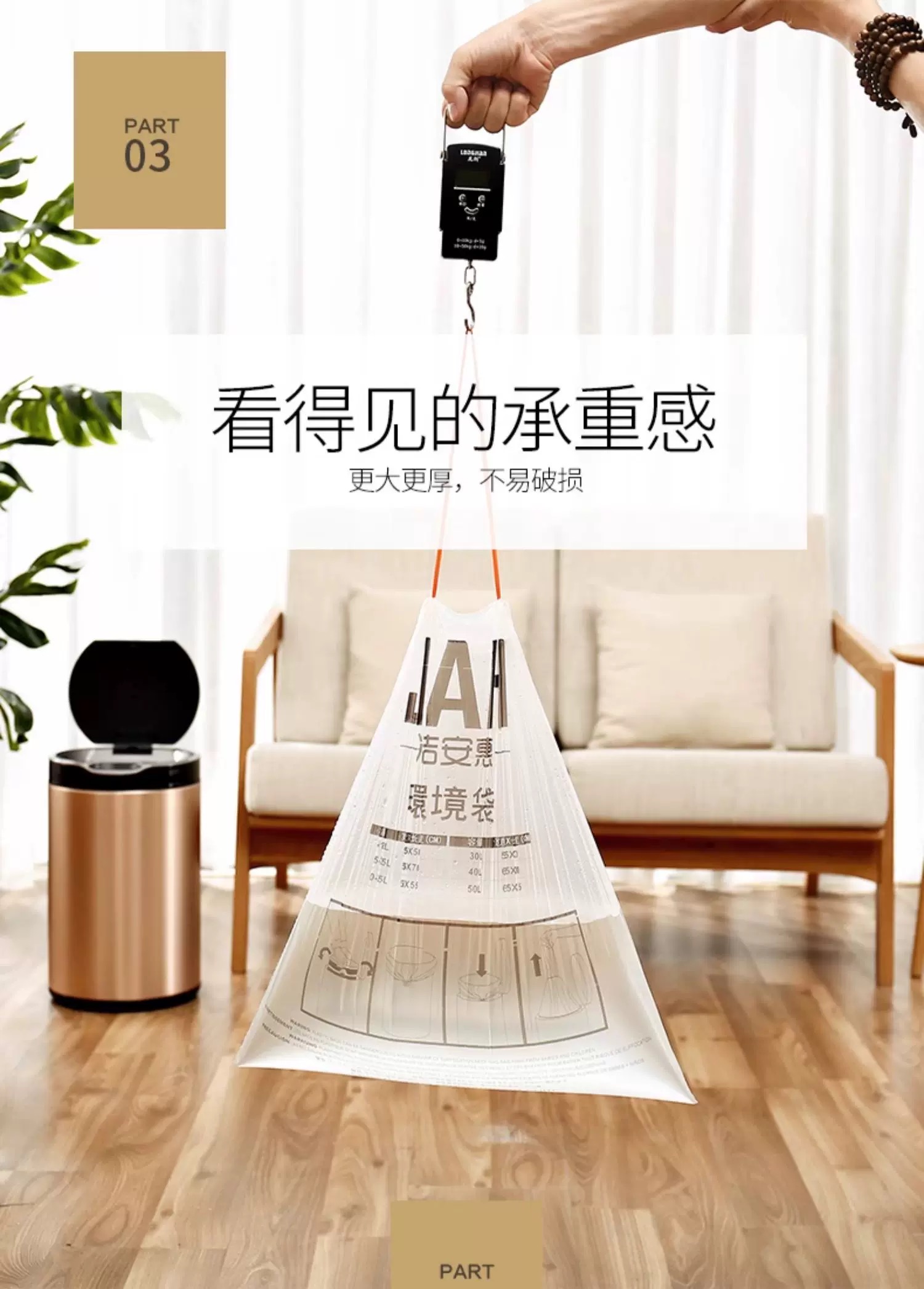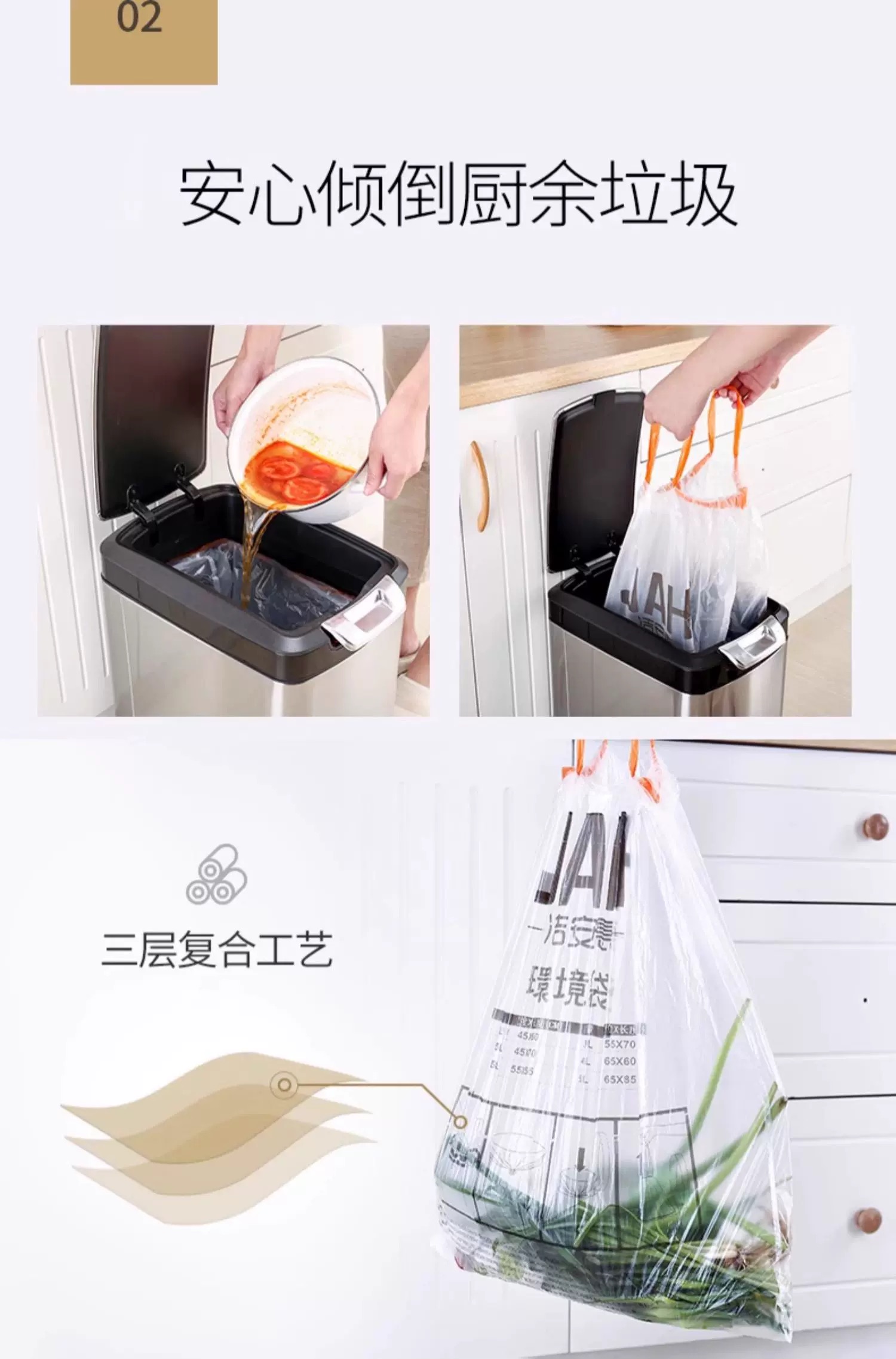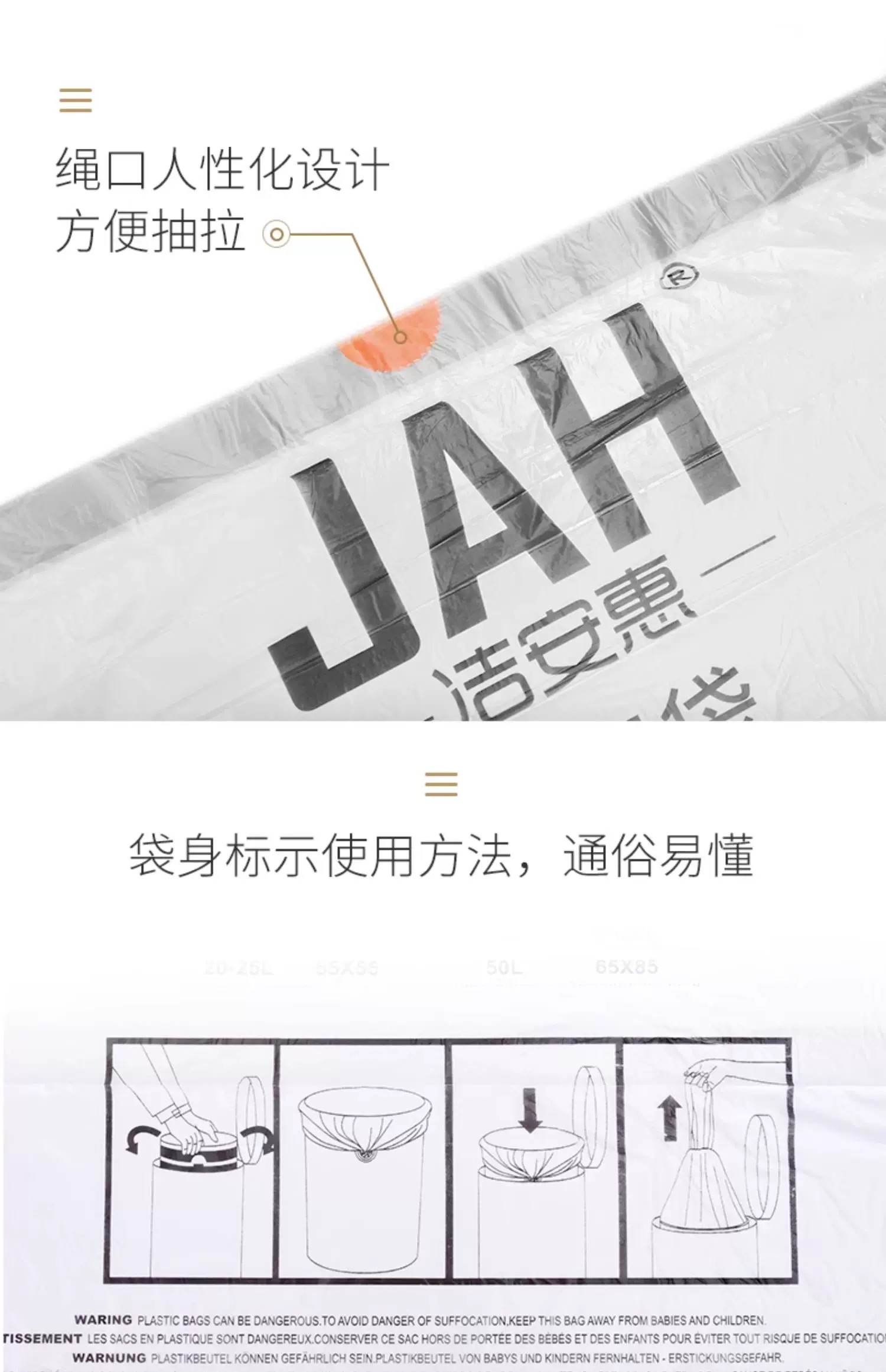 洁安惠 小号垃圾袋 101 3卷60个 白色(单位:组)