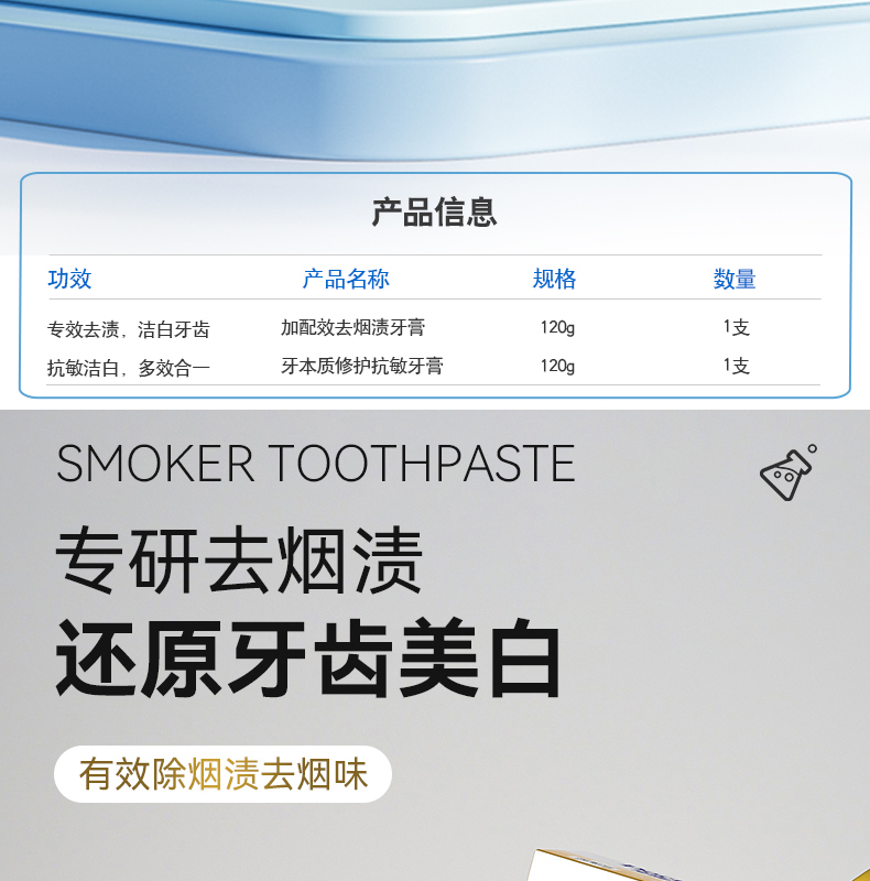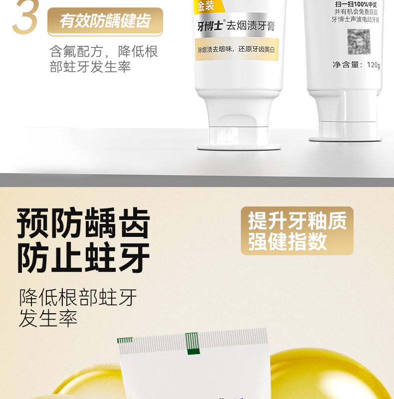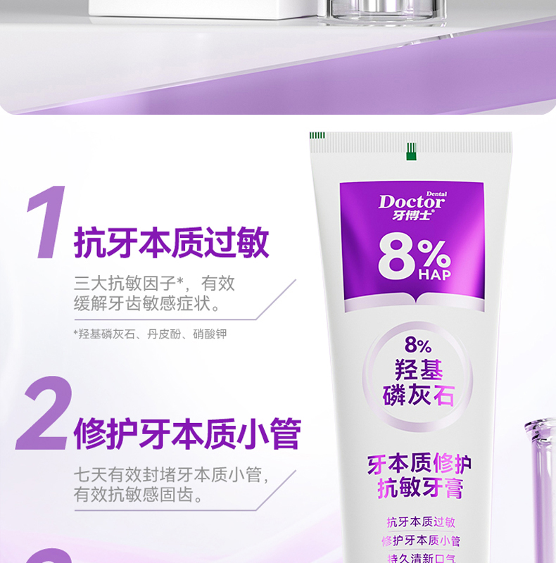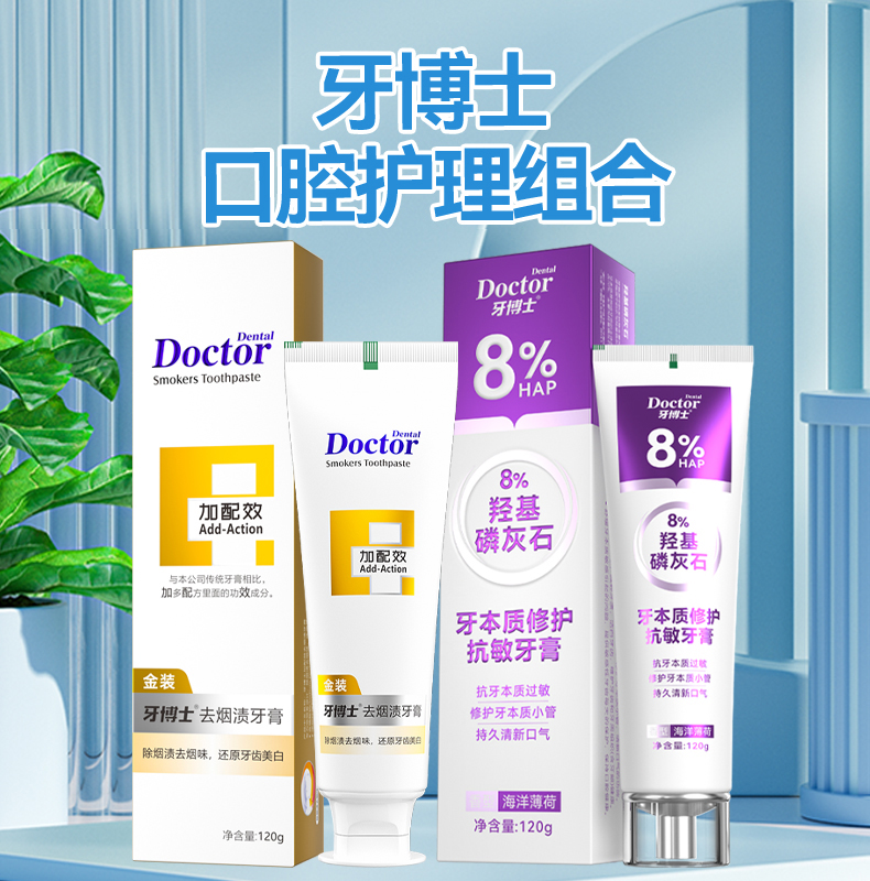 牙博士 牙膏 加配效去烟渍 牙本质修护抗敏羟基磷灰石牙本质修复抗敏美白 120g*2支 混色(单位:组)