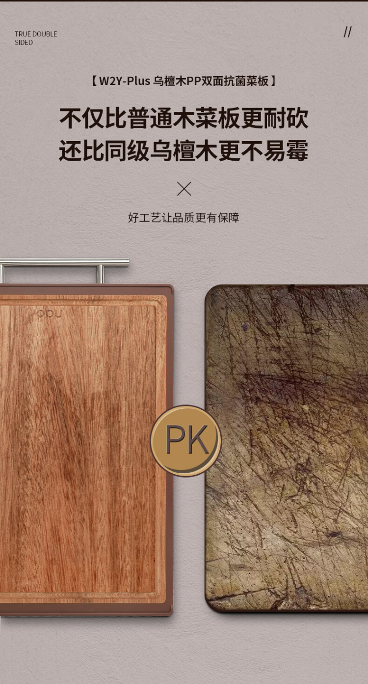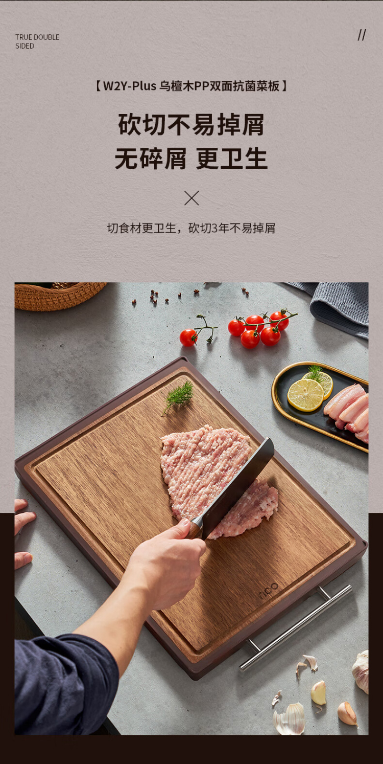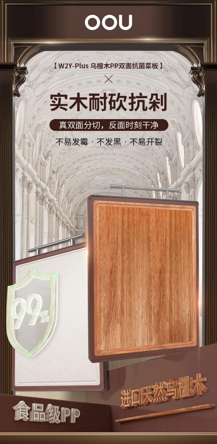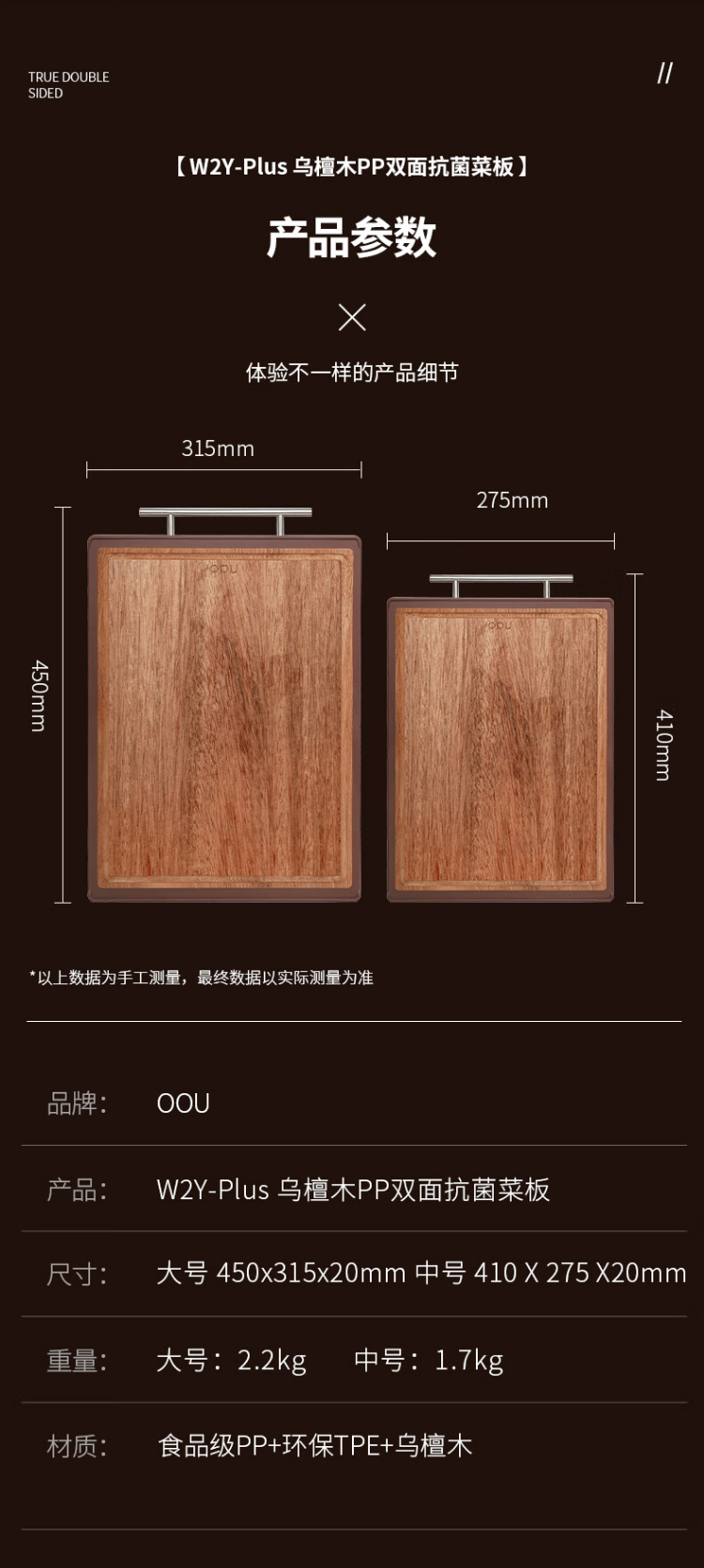 OOU CB0027 W2Y-Plus中号 380*275*20mm 乌檀木PP双面菜板 棕色(单位:块)