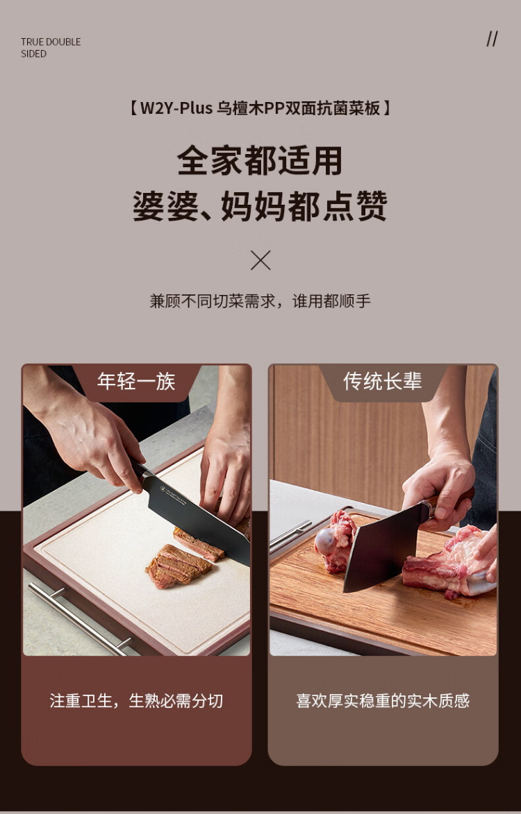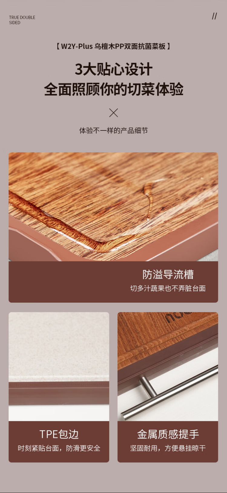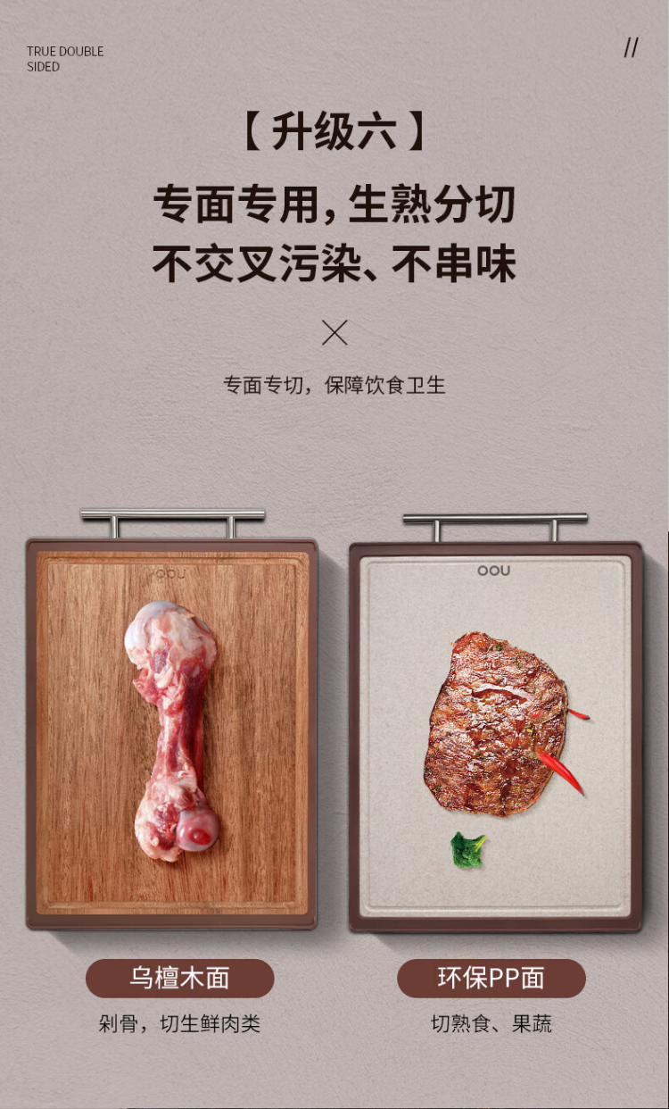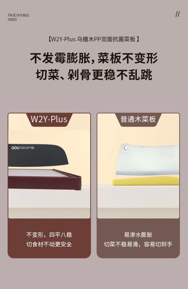 OOU CB0027 W2Y-Plus中号 380*275*20mm 乌檀木PP双面菜板 棕色(单位:块)