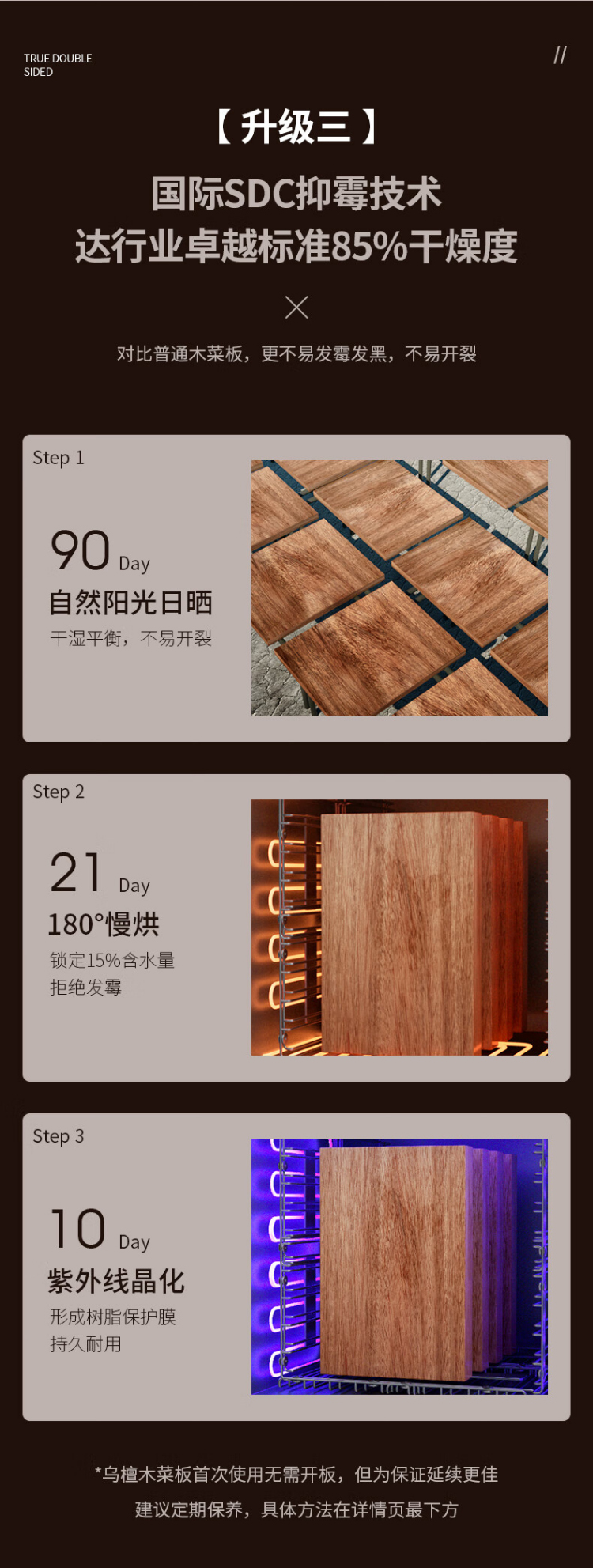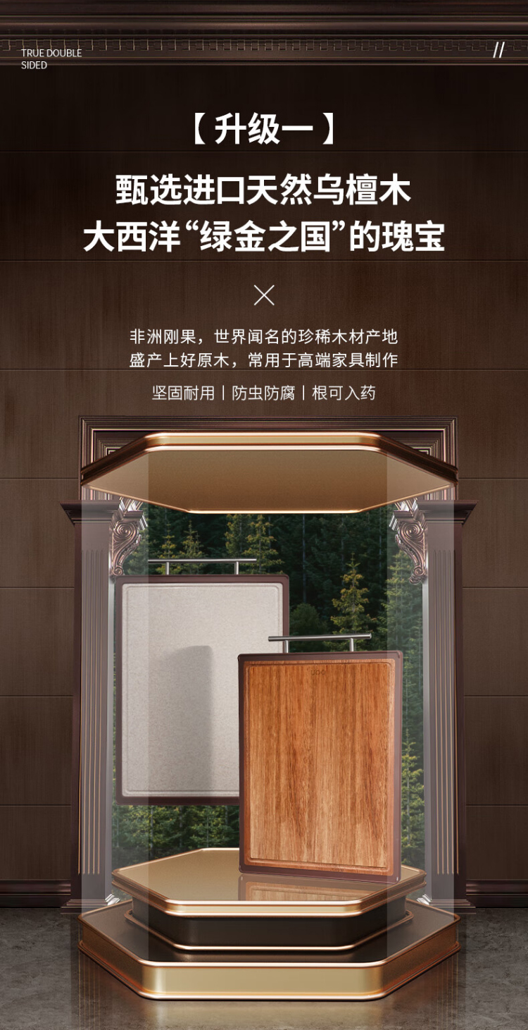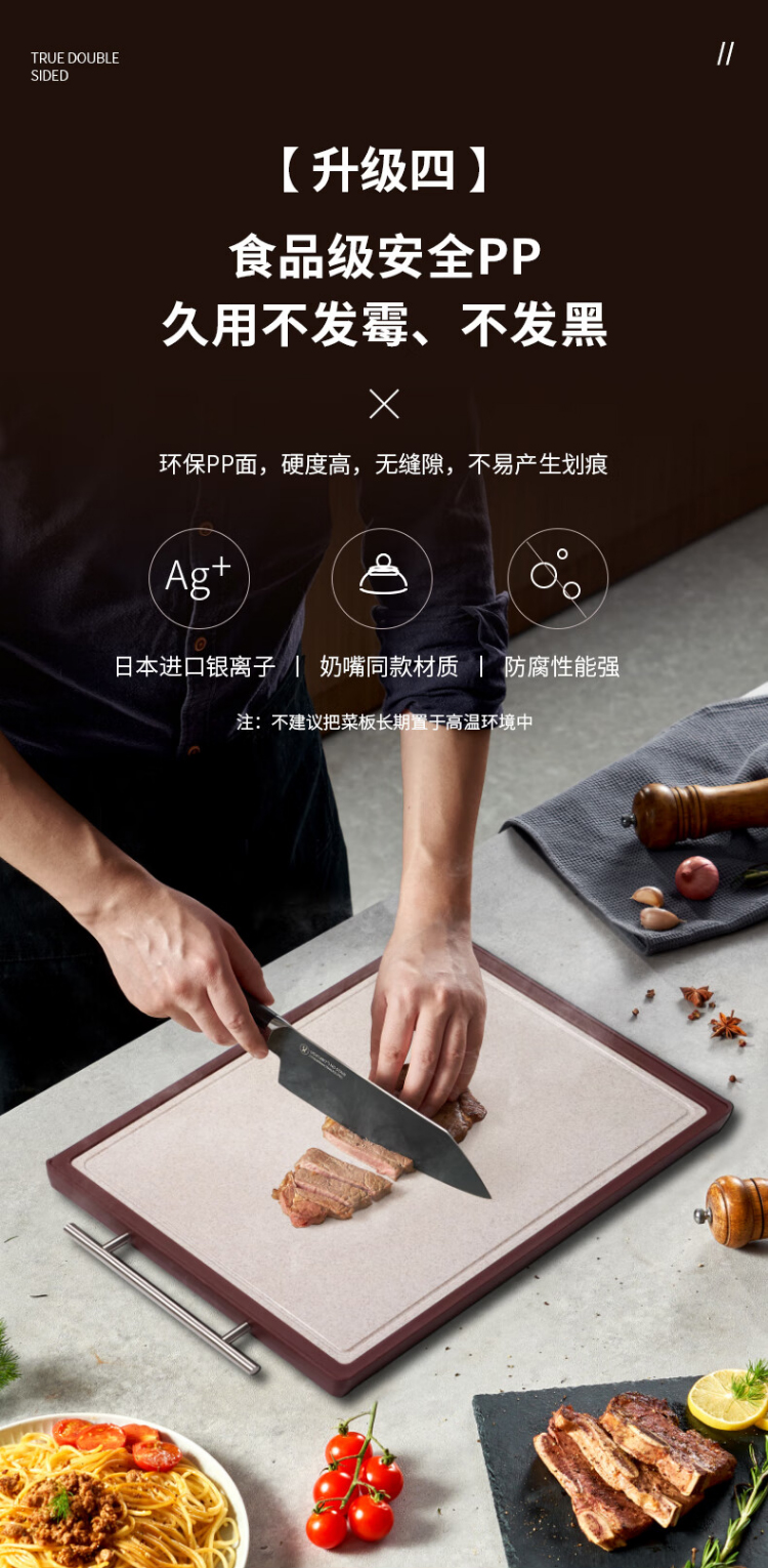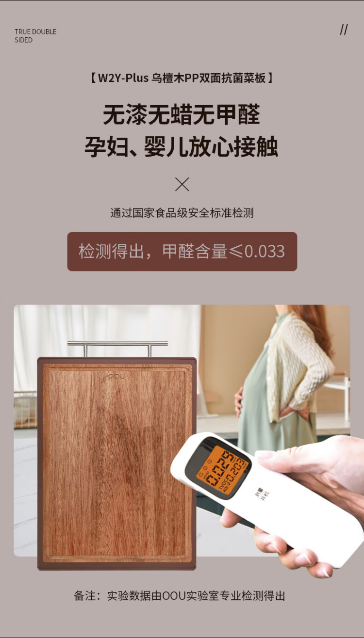 OOU CB0027 W2Y-Plus中号 380*275*20mm 乌檀木PP双面菜板 棕色(单位:块)
