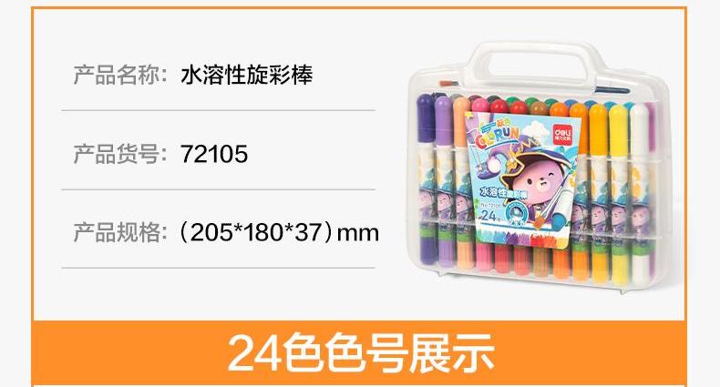 得力(deli) 水溶性旋彩棒 72105 24色 混色(单位:盒)