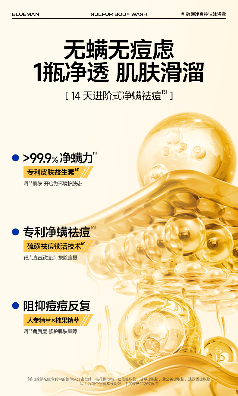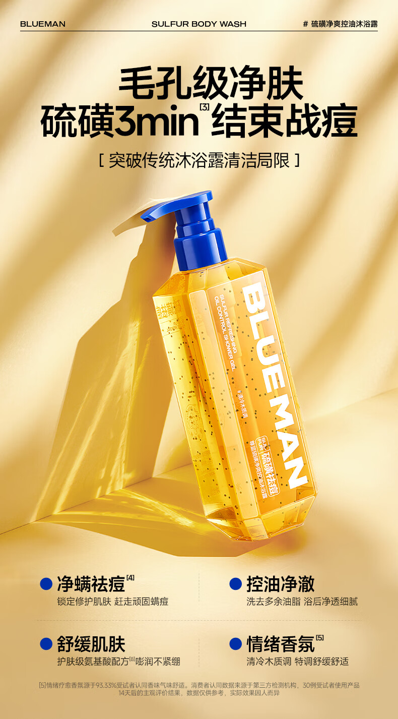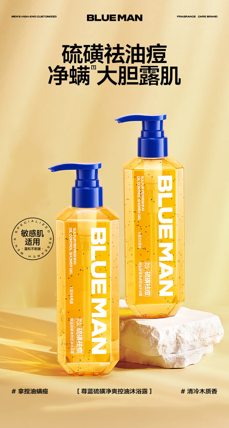 尊蓝(PRIME BLUE) 硫磺除螨净痘 沐浴露 500g 玫瑰金(单位:瓶)