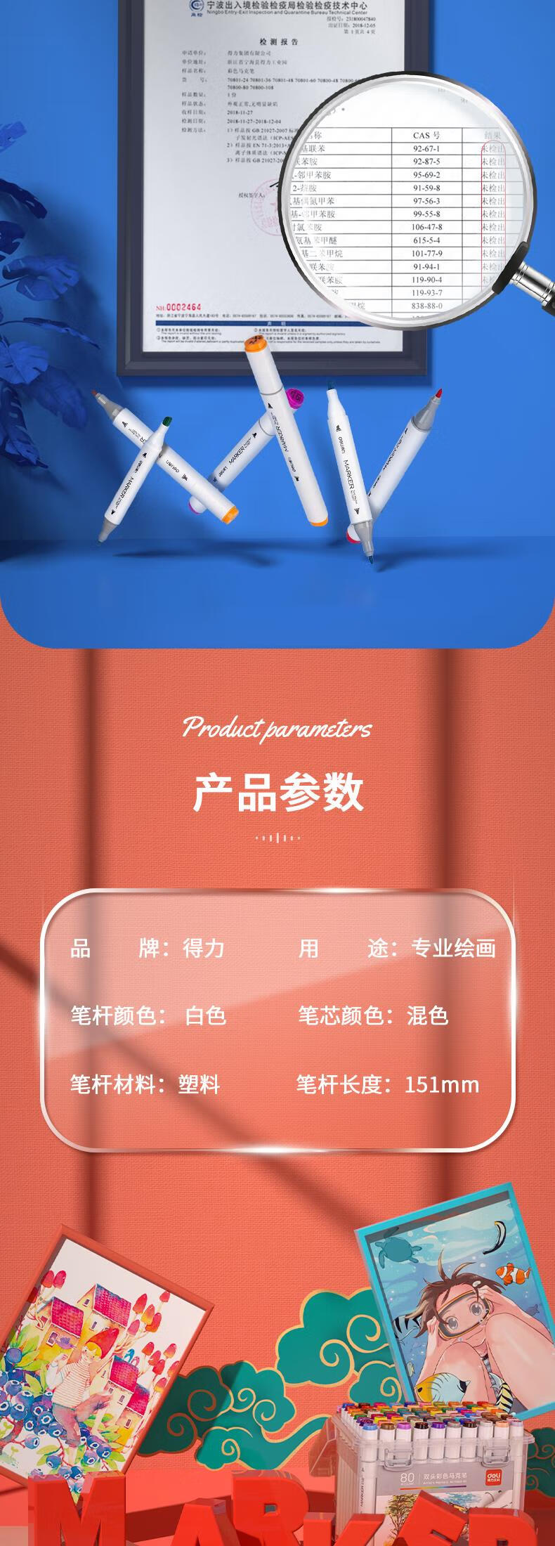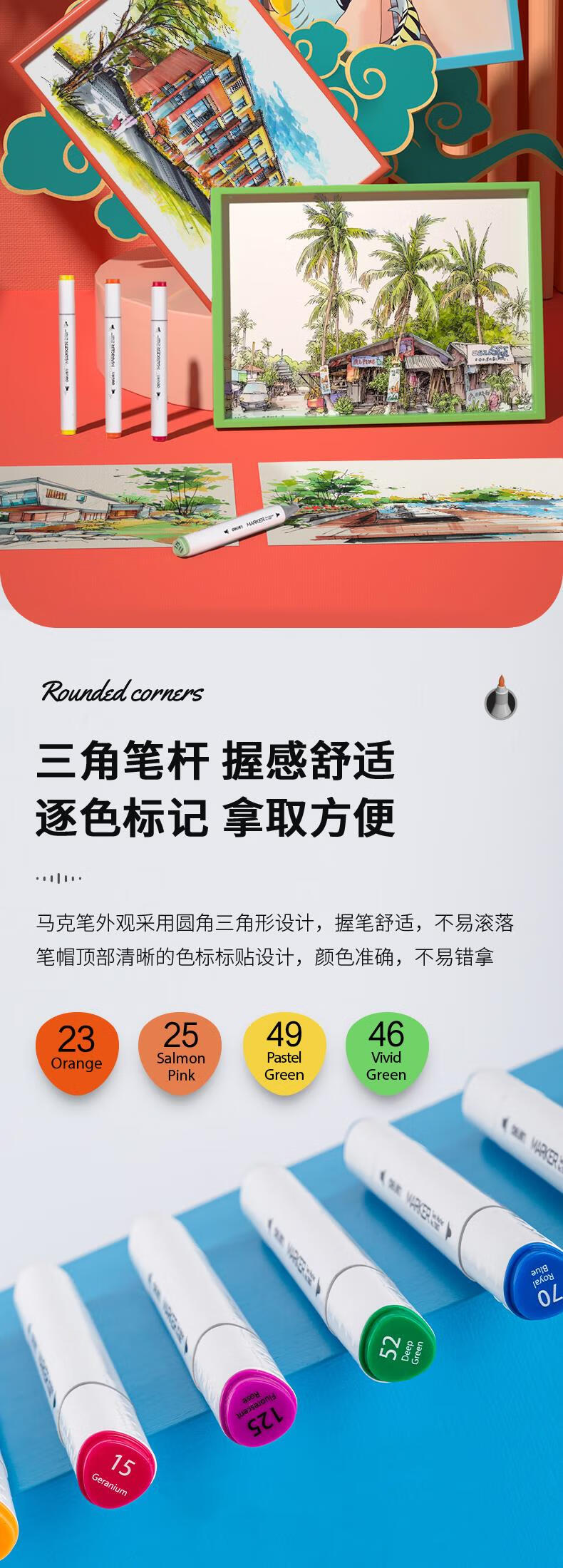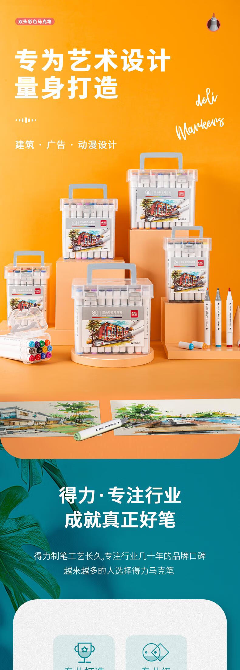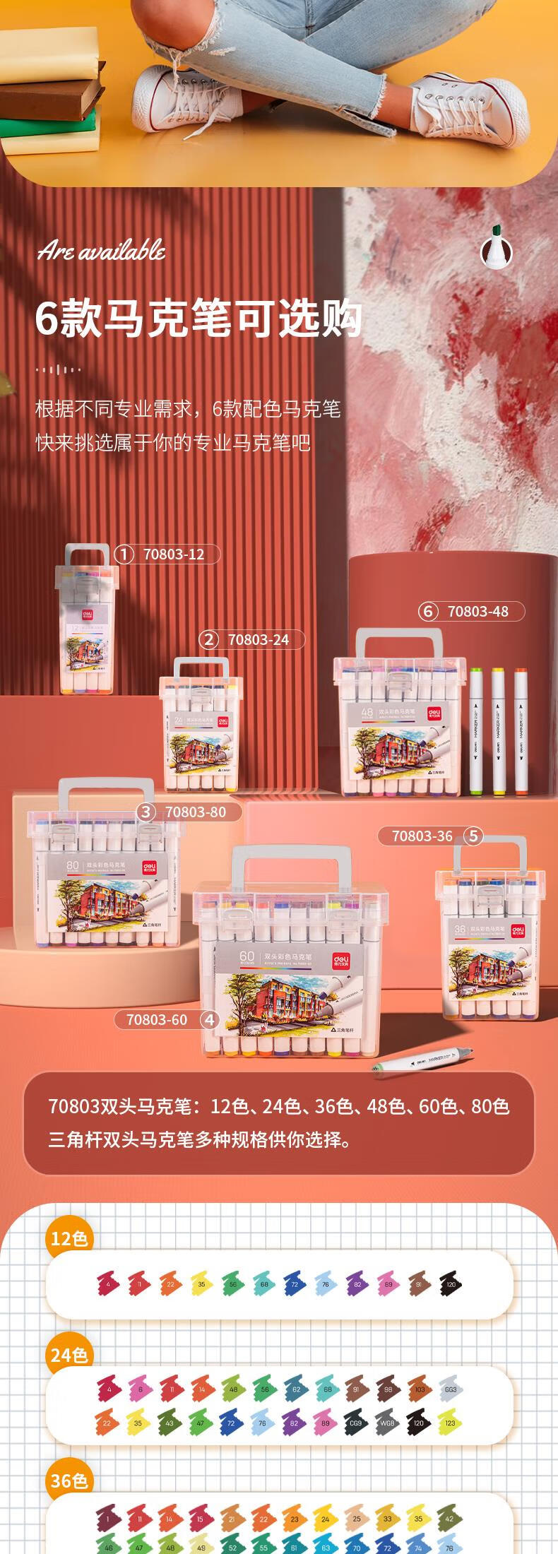 得力(deli) 三角杆双头马克笔 70803-12 12色/桶 混色(单位:桶)