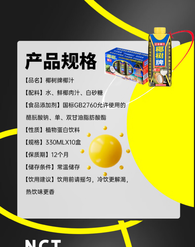 椰树 植物蛋白饮料 椰汁 330ml*10盒 混色(单位:箱)