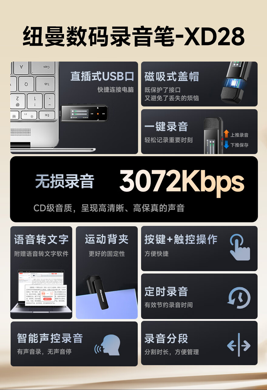 纽曼(Newmine) 录音笔 XD28 64G 黑色(单位:个)