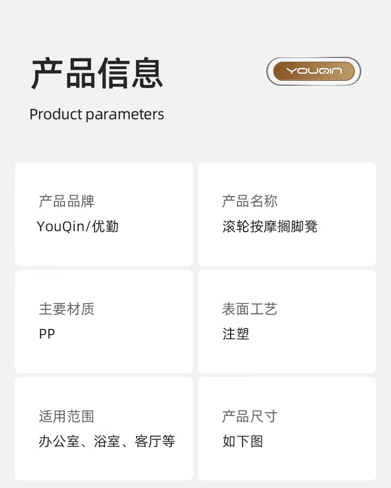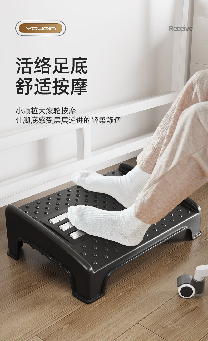 优勤(YOUQIN) 滚轮按摩踩脚凳大号 JR-GLAMCJDDH-HS-1093Y 37.7*26.9*12.5cm 黑色(单位:个)