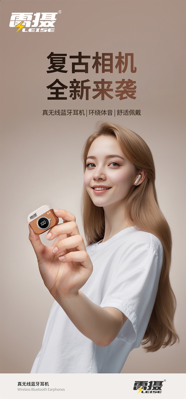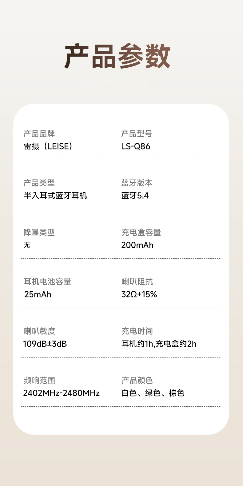 雷摄(LEISE) 真无线蓝牙 半入耳式耳机 LS-Q86 蓝牙5.4 白色(单位:副)