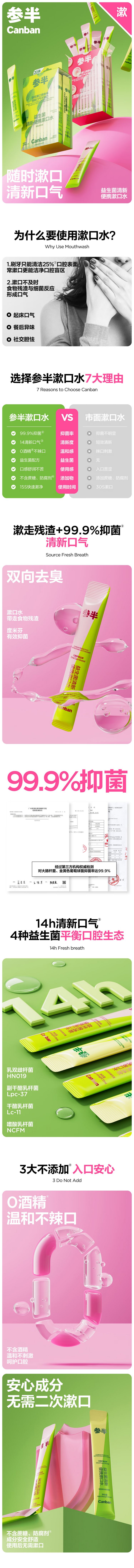 参半(NYSCPS) 桃气乌龙味 漱口水 20条装 粉色(单位:盒)