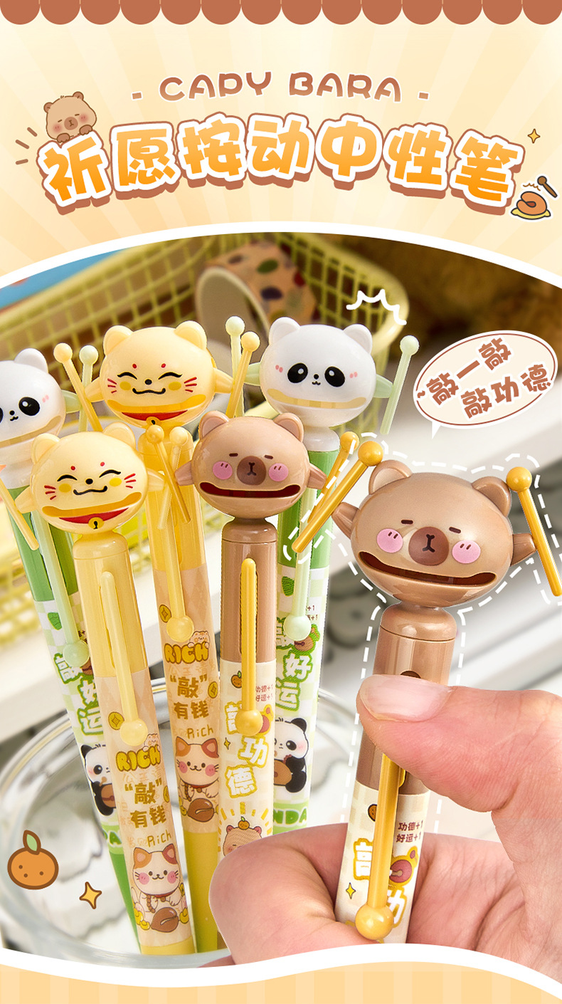童益星 祈愿按动中性笔 喵喵生财 长度16cm 黄色(单位:个)